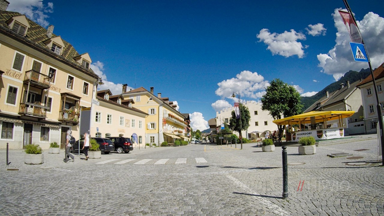 Hinter dem nahen Welsberg mit seinem verträumten Schloss öffnet sich das von weiten Wiesen geprägte Tal. Mit Blick auf die hochaufragenden Felswände des Haunold, des Sarlkofel, des Lungkofel und des Dürrenstein führt der Pustertaler Radweg nun die Pustertaler Straße entlang nach Niederdorf, in dem schon so mancher prominente Gast zur Sommerfrische weilte. Besonderer Beliebtheit erfreut sich der liebevoll angelegte Kurpark Niederdorf mit seinem verträumten See, den wohltuenden Kneippanlagen, dem vergnüglichen Kinderspielplatz und dem botanischen Lehrpfad.