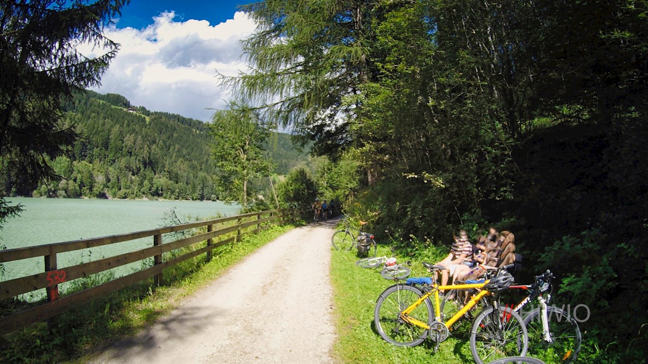 Hinter Oberolang folgt der Radweg ein kurzes Stück der Straße zum 44 Hektar großen Olanger Stausee hinab, der seit 1958 die Wasser der Rienz und ihrer Nebenflüsse zur Energiegewinnung staut.