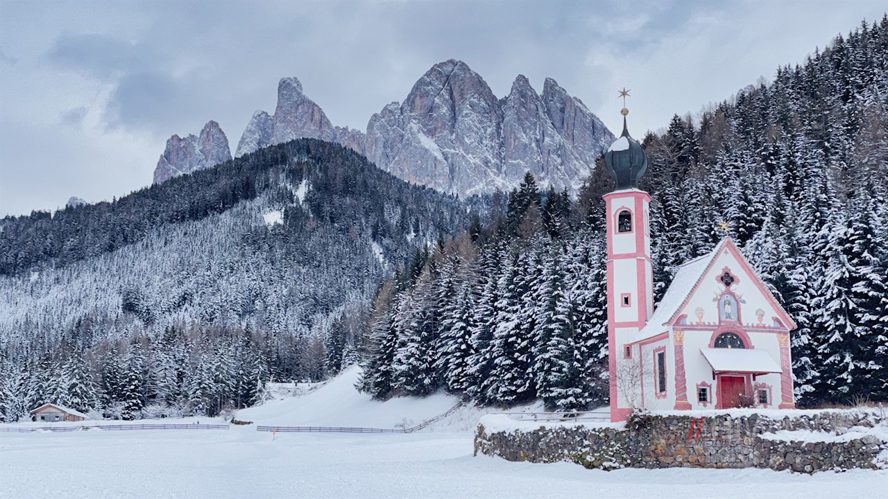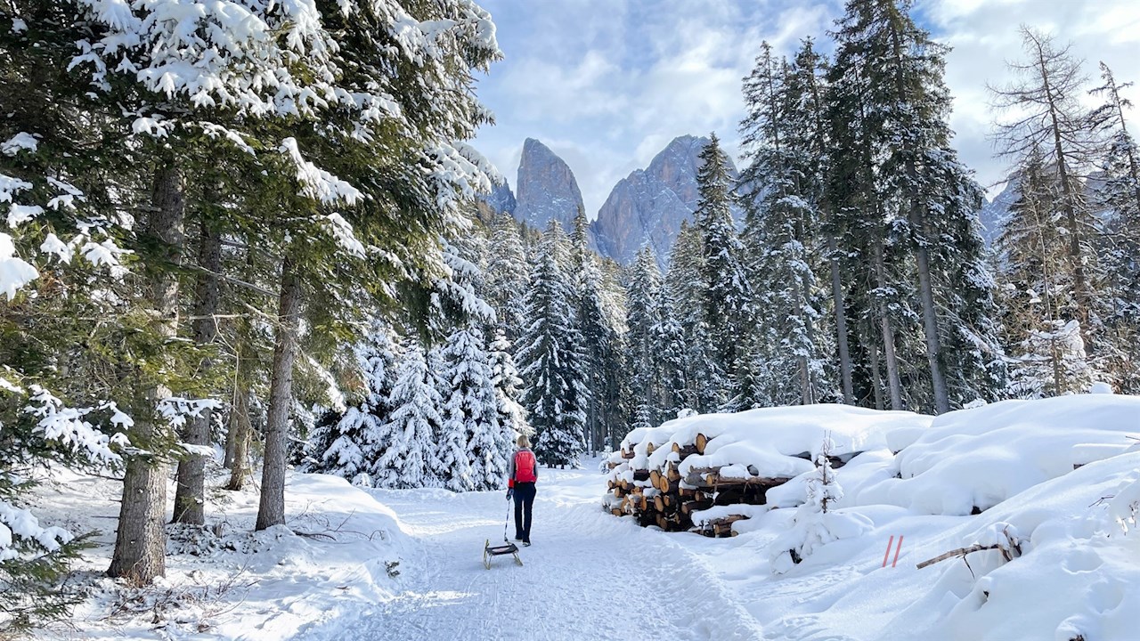 Von Ranui zieht sich ein schöner Winterwanderweg zur beliebten, am Fuße der Geislerspitzen gelegenen Glatschalm. Wer die Rodel dabeihat, kann auf der nahen Rodelbahn zum Ausgangspunkt hinabfahren.