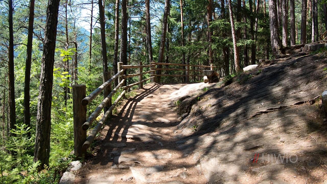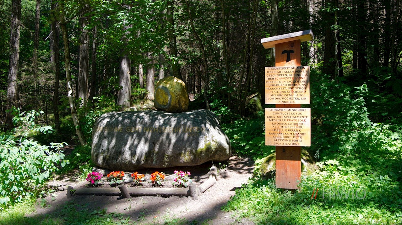 Längs dieses besinnlichen Waldweges zeichnen suggestive, von Südtiroler Künstlern gefertigte Kunstwerke den Sonnengesang des Franz von Assisi nach. In diesem ältesten Zeugnis italienischer Literatur pries der später Heiliggesprochene die Schönheit der Schöpfung und dankte Gott dafür.
