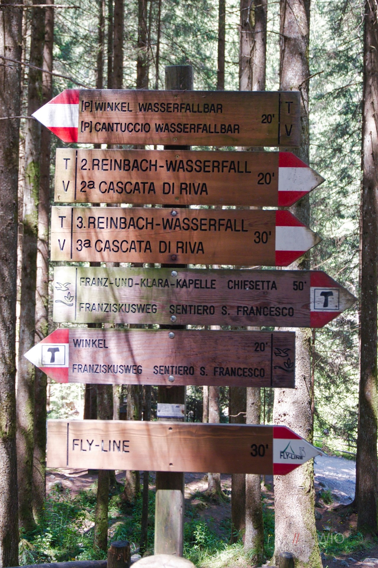 Die Wanderung zu den Reinbachwasserfällen nimmt im kleinen Weiler Winkel östlich von Sand in Taufers ihren Anfang, in dem sich zahlreiche Parkmöglichkeiten finden.