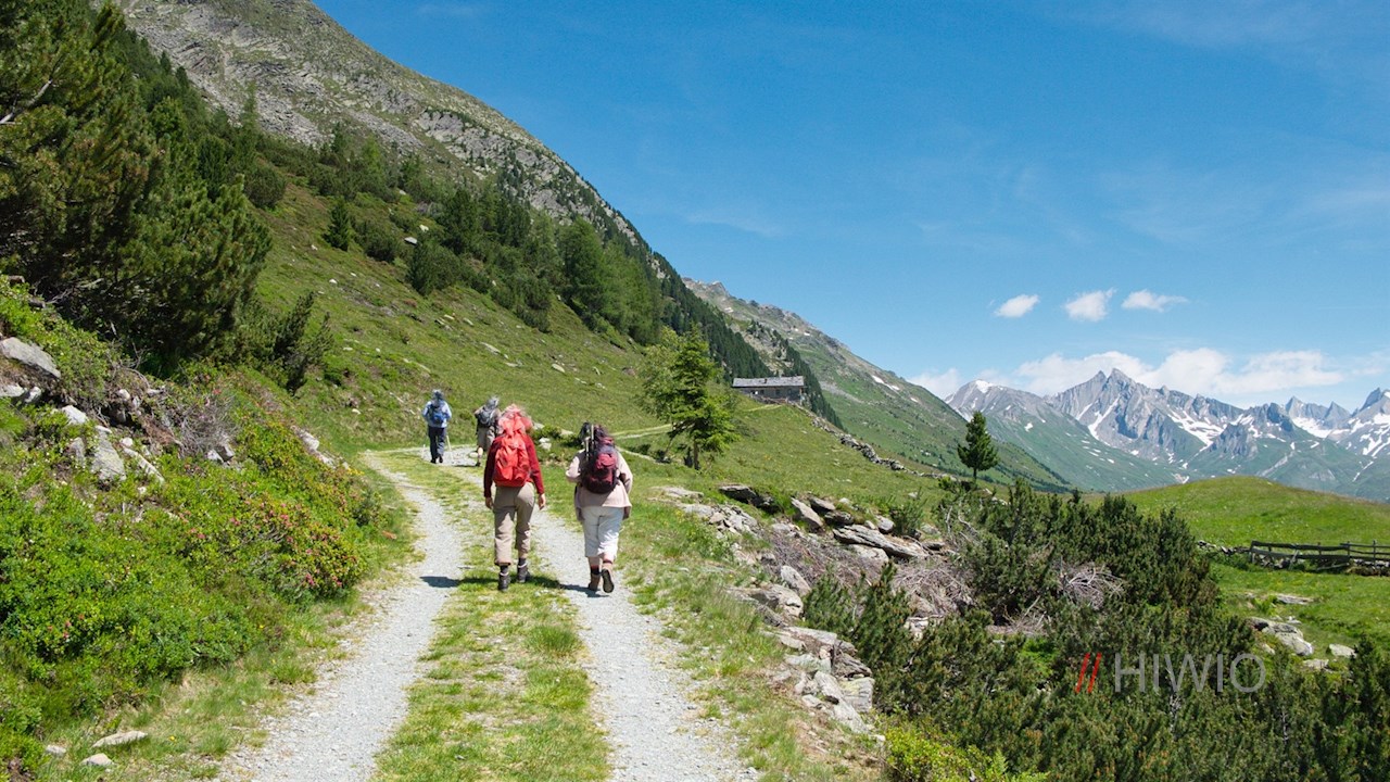 Im Bann der gegenüberliegenden Rieserfernergletscher schlängelt sich der Reiner Höhenweg im nunmehr sanften Auf und Ab von der Durra Alm durch die blumenreichen Almwiesen.