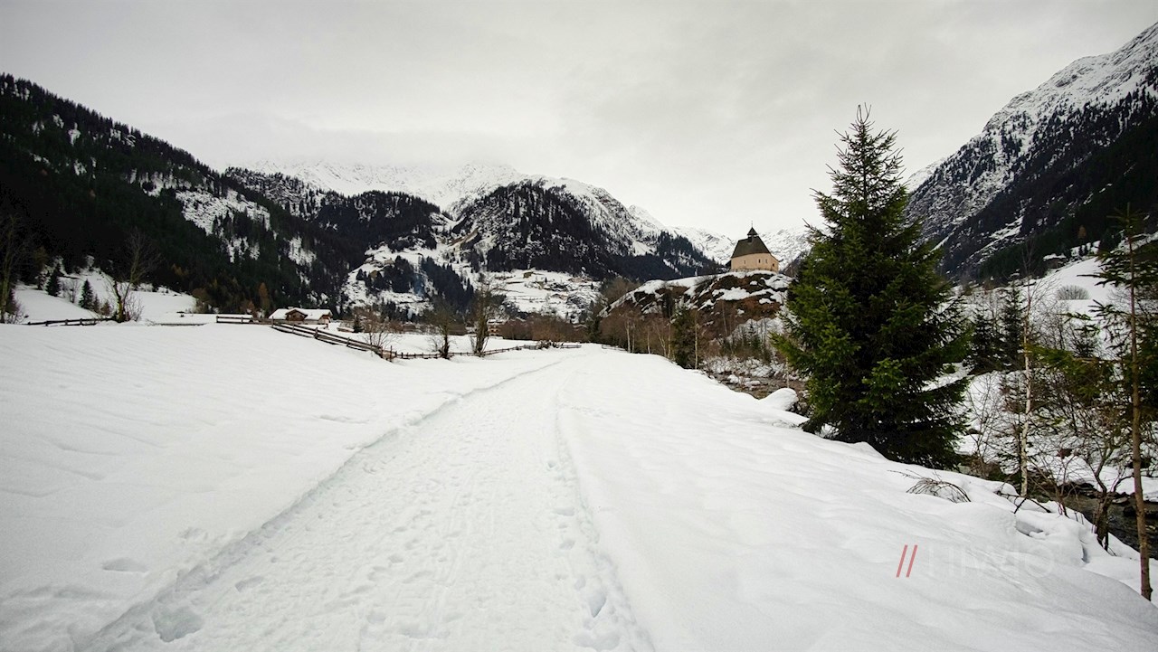 Im beschaulichen Weiler Gasse verlässt man den Winterwanderweg Nr. 8 und folgt dem Weg Nr. 7A. Er führt zum nunmehr nahen, von Nadelbäumen umrahmten Magdalenakirchlein. Neben dieser weithin sichtbaren Knappenkapelle aus dem 15. Jahrhundert entfaltet sich ein malerischer Ausblick auf das hintere Ridnauntal und seine schneebedeckte Bergwelt.