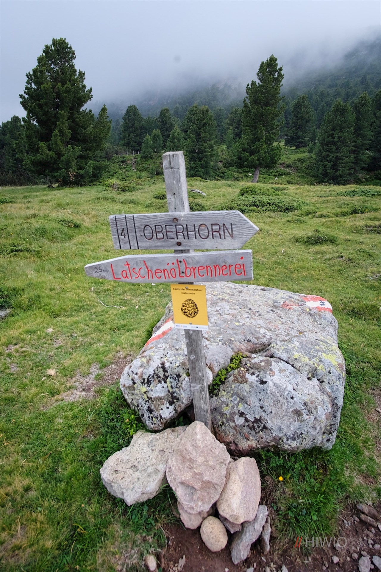 Vom Parkplatz führt der anfangs breite Wanderweg Nr. 4 (später kurz 4B) im angenehmen Anstieg durch Wald und kleine, von einzelnen Almhütten bestandene Lichtungen in Richtung Rittner Horn.