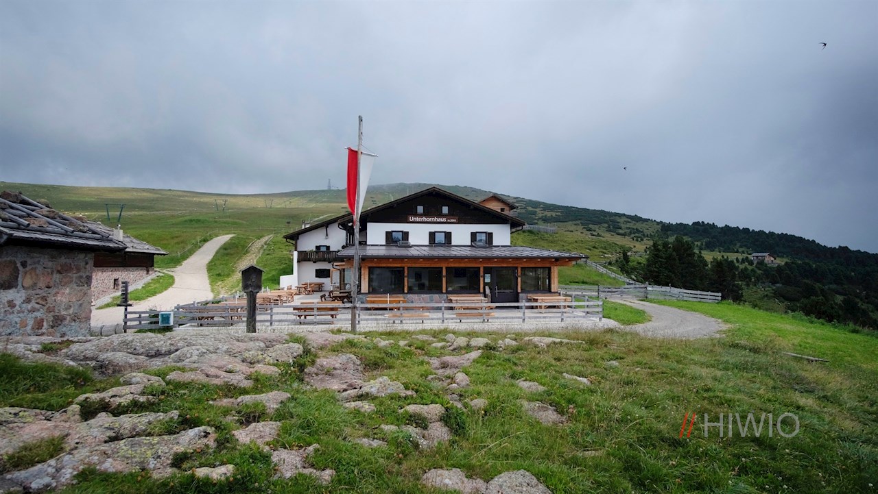 Vom Rittner Horn führt der liebevoll angelegte Wanderweg Nr. 1 durch die aussichtsreichen Schafweiden zum nahen, bei Wanderern und Radfahrern gleichermaßen beliebten Unterhornhaus hinab.