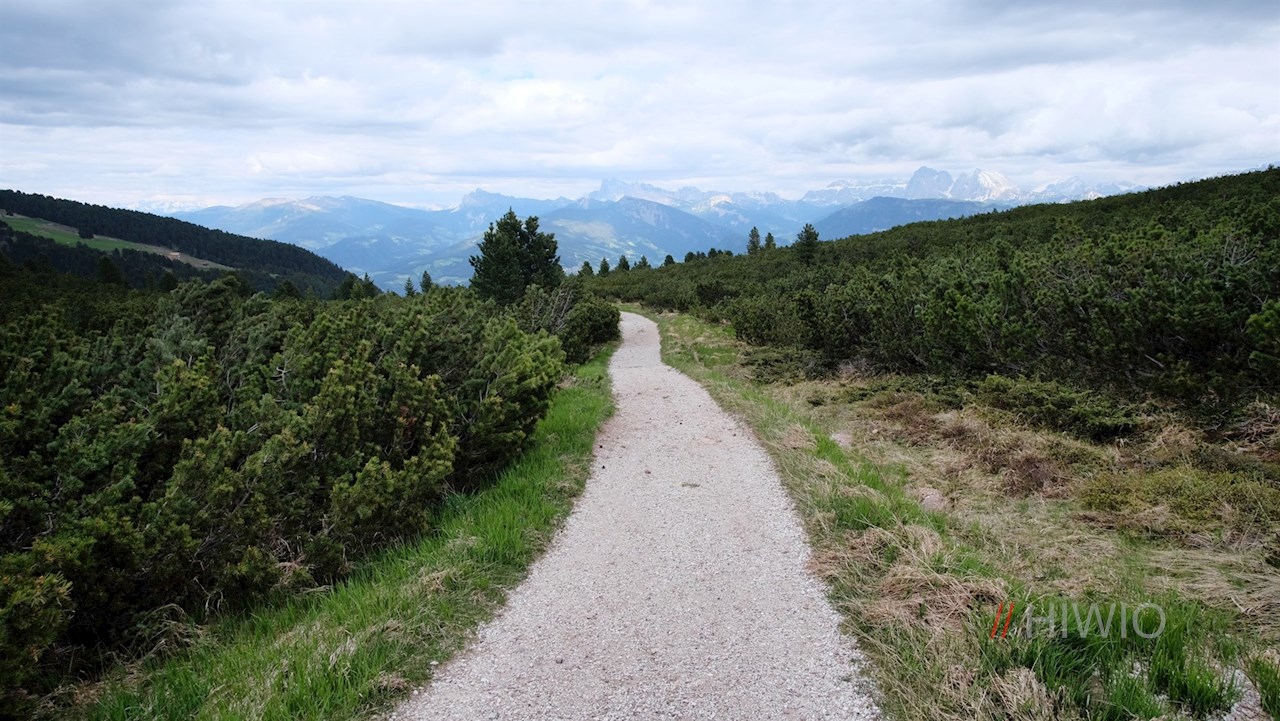 Mit Blick auf namhafte Gipfel wie den Schlern, den Platt- und Langkofel oder den Sellastock schlängelt sich der Panoramaweg im sanften Auf und Ab durch die bezaubernde, von zahlreichen Latschen bewachsene Landschaft weiter. Unterwegs laden das „Dolomitoskop“ und zahlreiche Aussichtsbänke zum Innehalten und Staunen ein.