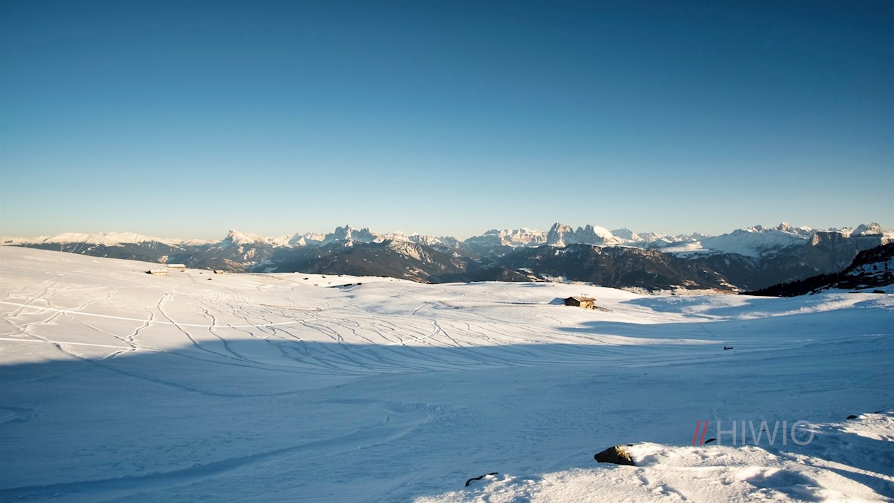 Hinter dieser gastfreundlichen Hütte folgt man weiterhin dem gespurten Winterwanderweg in Richtung Rittner Horn, der zunächst in angenehmer Steigung auf den Gasteiger Sattel führt. Unterwegs entfalten sich malerische Ausblicke auf die gegenüberliegenden Dolomiten, von denen insbesondere die Villnösser Geisler, der Sellastock, der Lang- und Plattkofel ins Auge stechen.
