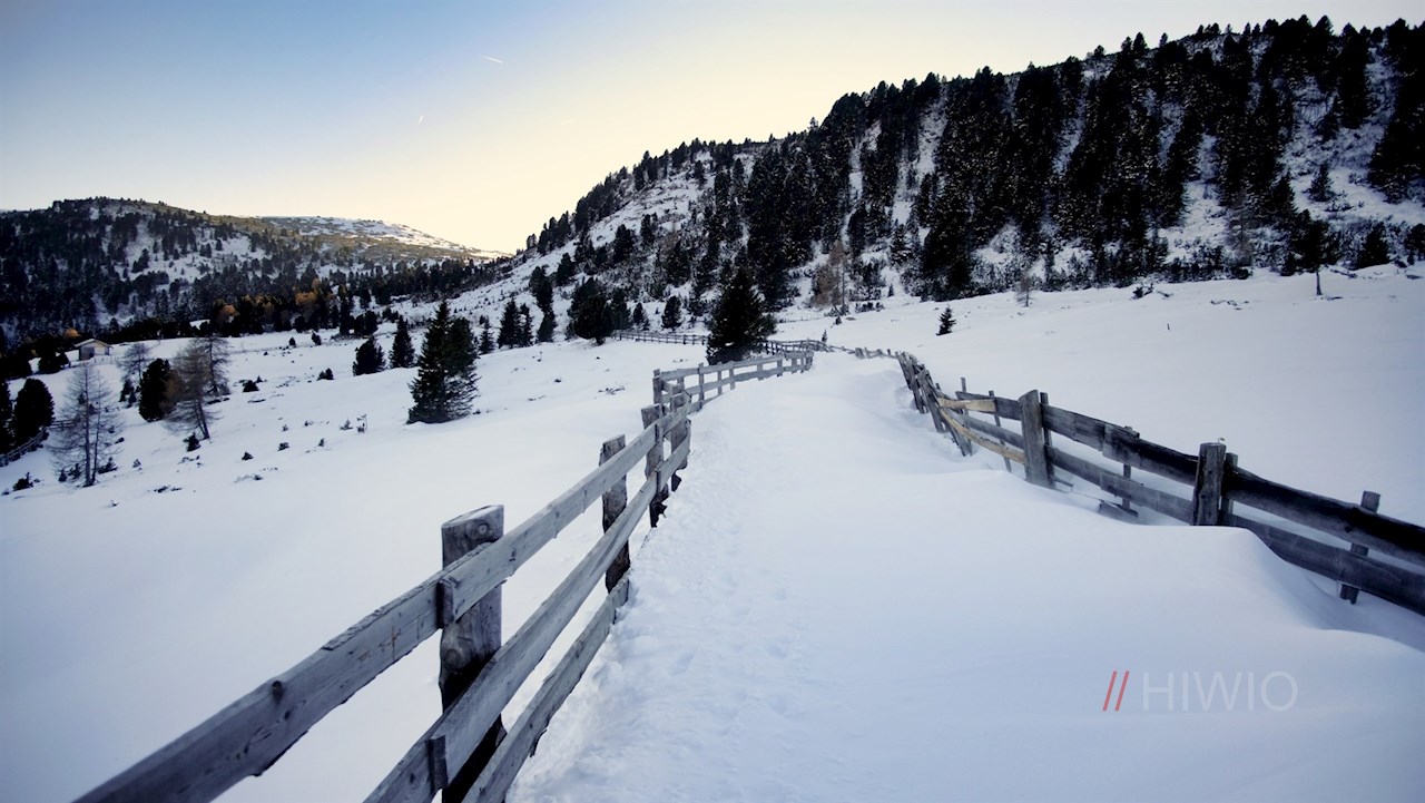 Die Winterwanderung auf das Rittner Horn beginnt auf dem weitläufigen Wanderparkplatz nahe der Gasserhütte am Rande der Villanderer Alm. Hier schlägt man den breiten Wanderweg in Richtung Moar in Plun ein.