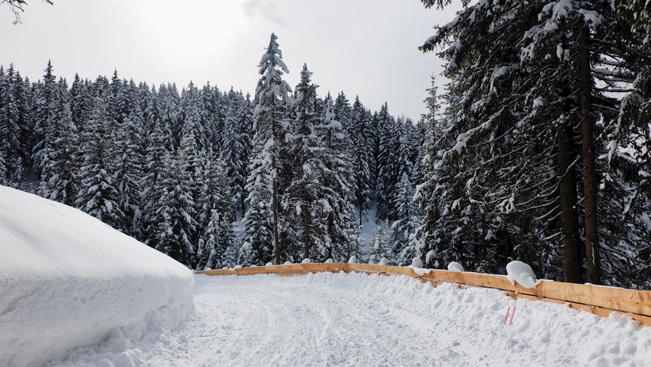 Vom Ende der Rodelbahn in Meransen erreicht man den Parkplatz der Bergbahn in wenigen Minuten.