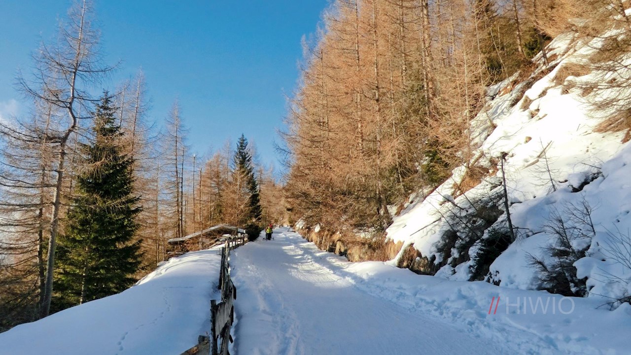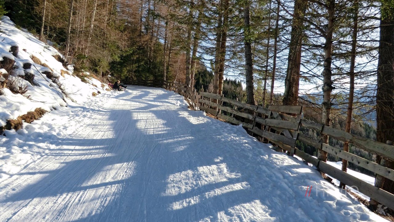 Der Rückweg von der Prantneralm erfolgt auf dem Hinweg. Er wird im Winter gerne mit der Rodel angetreten.