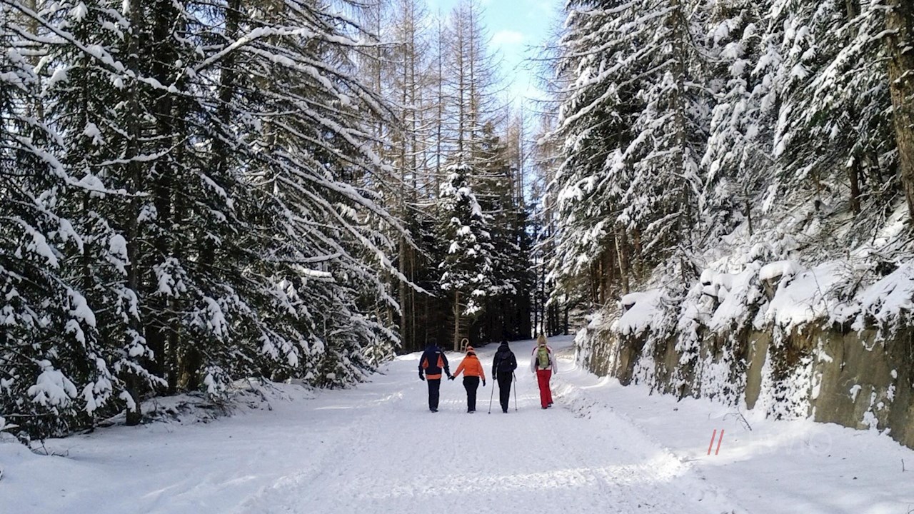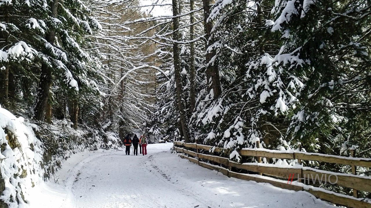 Von dort wandert man auf der breiten, stets wohlpräparierten Rodelbahn durch einen lichten Wald, der immer wieder schöne Ausblicke auf den Sterzinger Talkessel und die umliegende Bergwelt freigibt.