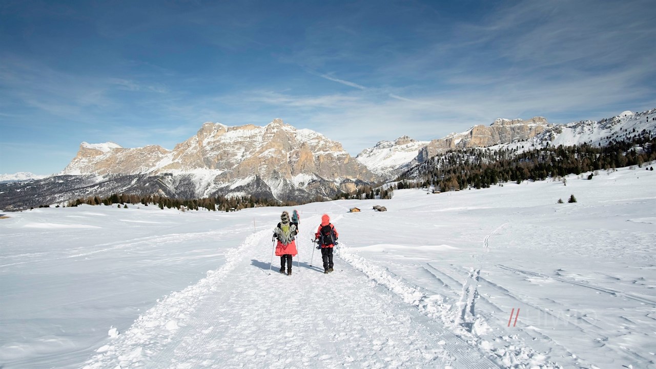 Winterwandern bei St. Kassian auf den Störes auf der Pralongia Hochebene