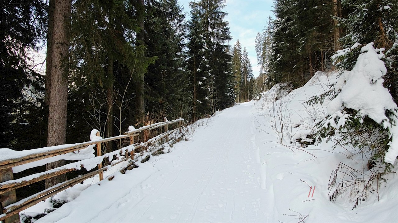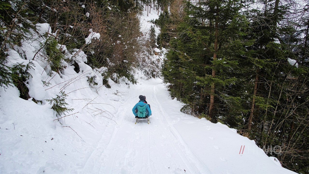 Während die Schneeschuhwanderer und Skitourengeher alsbald die mit der Nr. 29 markierten Waldpfade einschlagen können, folgen die Wanderer und Rodler dem längeren, dafür aber sanfter ansteigenden Weg Nr. 22.