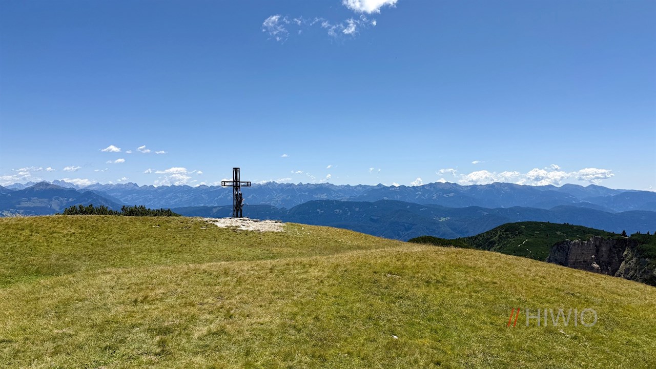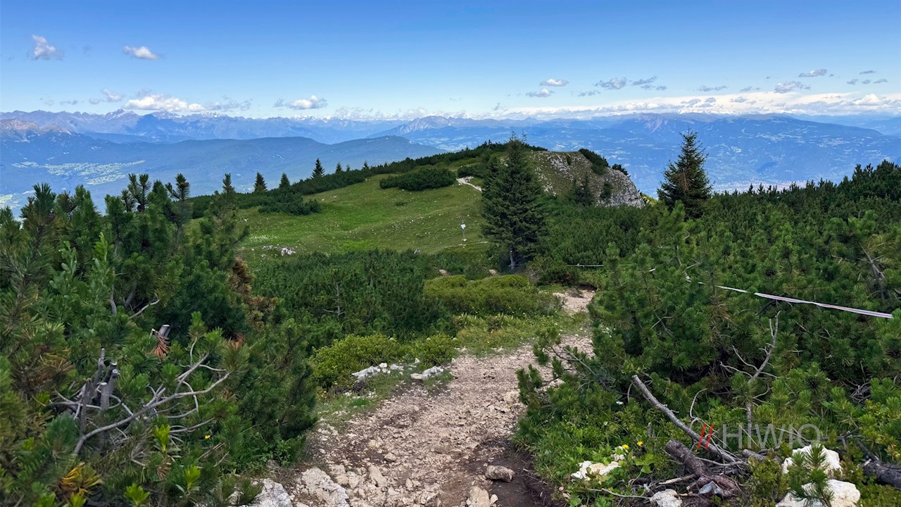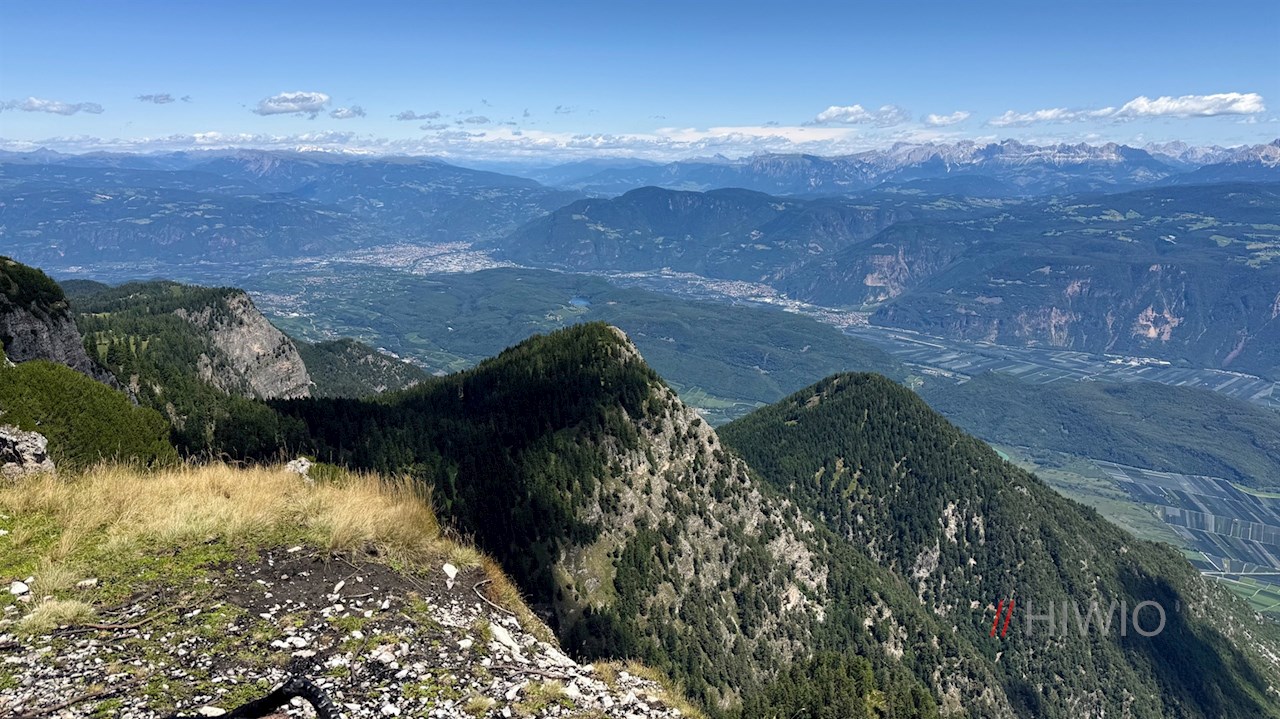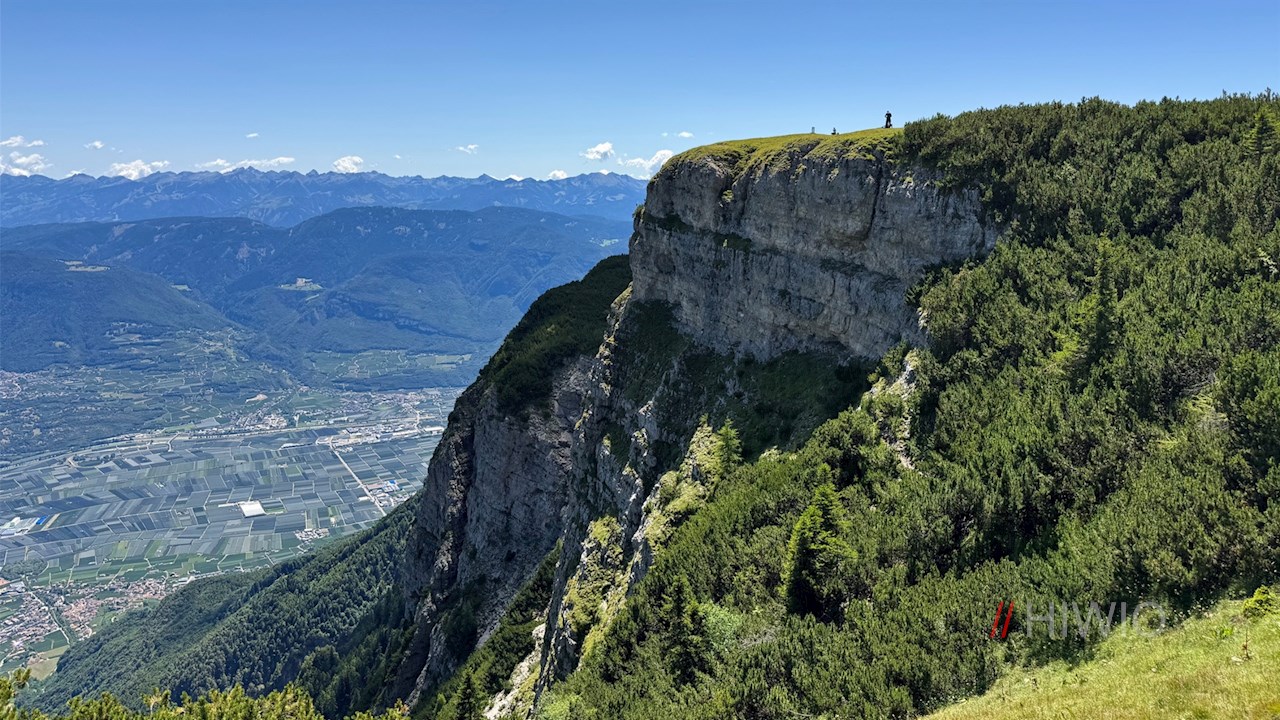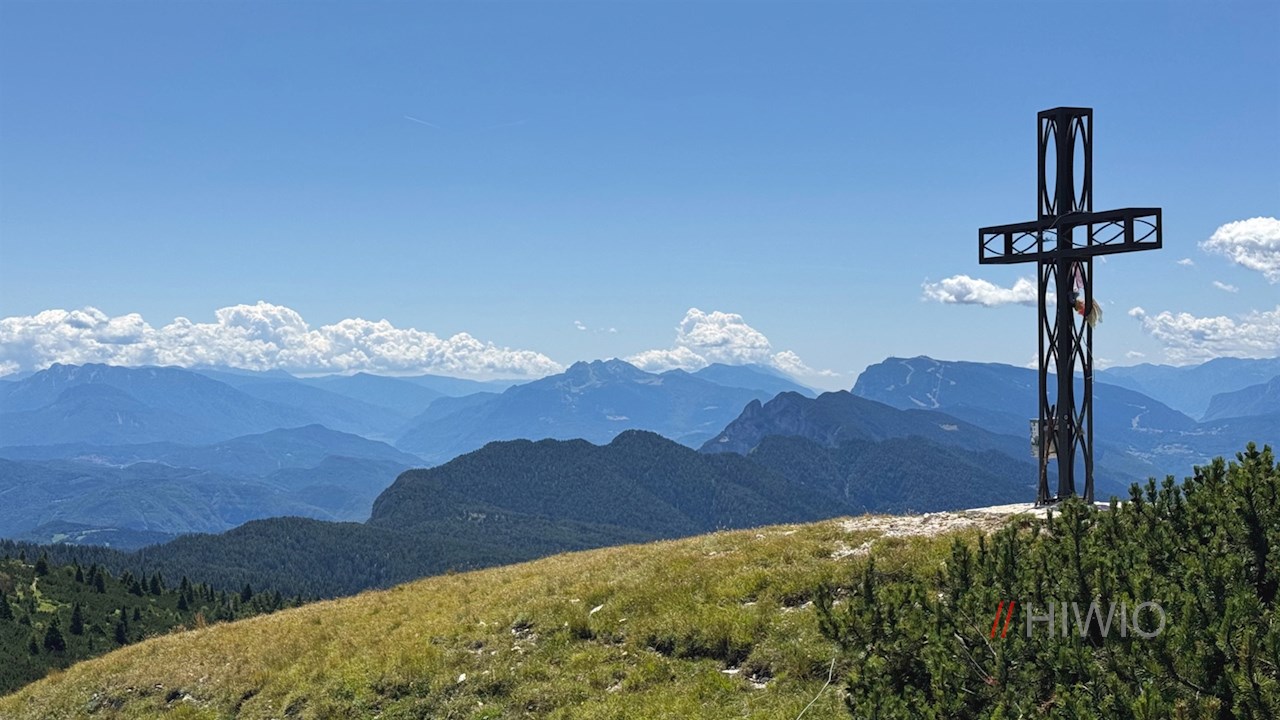 Hinter der gemütlichen Almhütte steigt der Wanderweg vor verträumter Kulisse auf das flache Gipfelplateau des steil abfallenden Roen an, auf dem sich ein atemberaubender Panoramablick entfaltet: Der Blick schweift von den bleichen Dolomiten über die Brenta- und Adamellogruppe bis hin zu König Ortler und die dahinter aufragende Bergwelt. Uns zu Füßen liegen indes die Landeshauptstadt Bozen, der vom Obst- und Weinanbau geprägte Süden Südtirols mit den beiden schimmernden Montigglerseen auf der einen und dem Trienter Val di Non auf der anderen Seite. Ein großer Panoramatisch nahe dem formschönen Gipfelkreuz verrät die Namen einiger der zahlreichen ringsum aufstrebenden Gipfel.