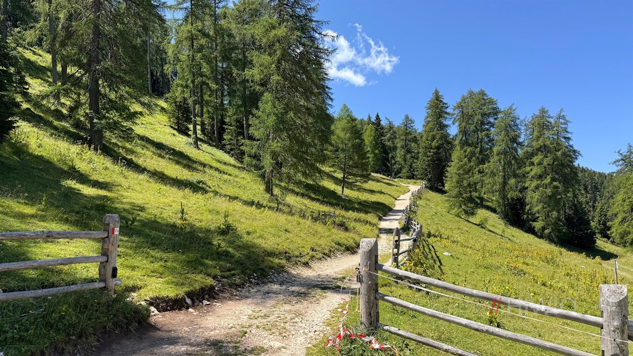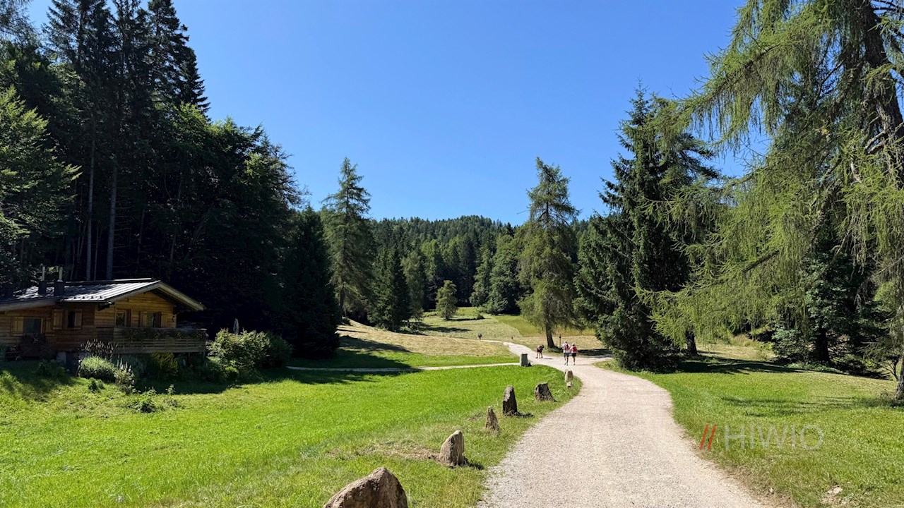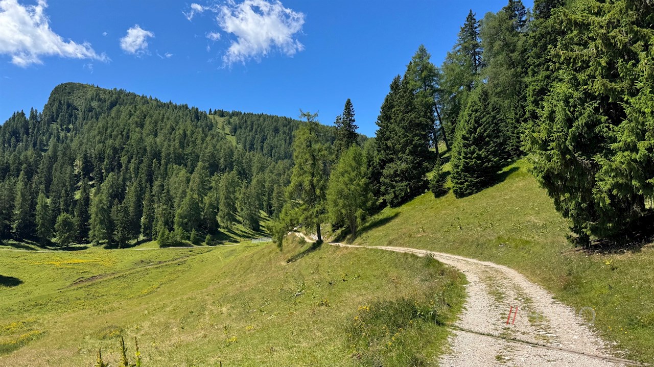 Nach einer guten Stunde steten Wanderns verlockt die Halbweghütte zur genüsslichen Zwischenrast, bevor sich die Wanderung durch Wald und schöne Almwiesen zur nicht minder verlockenden Romeno Alm fortsetzt.