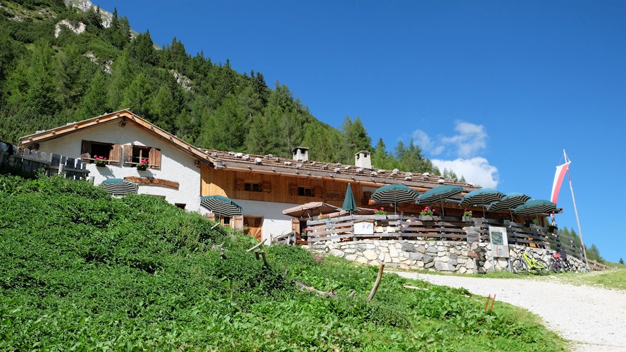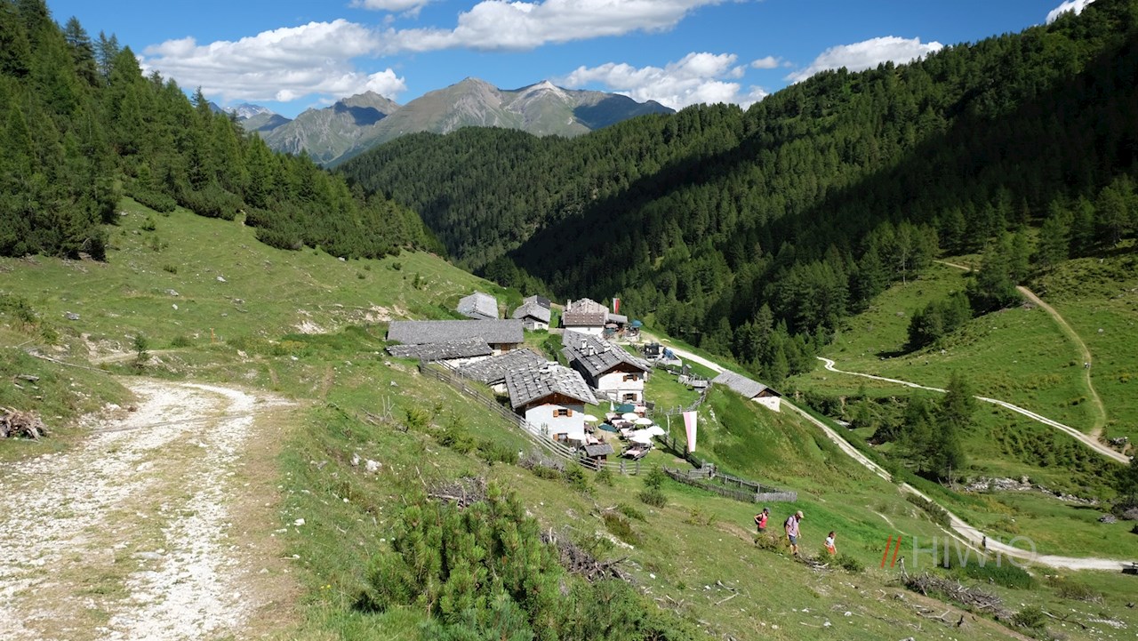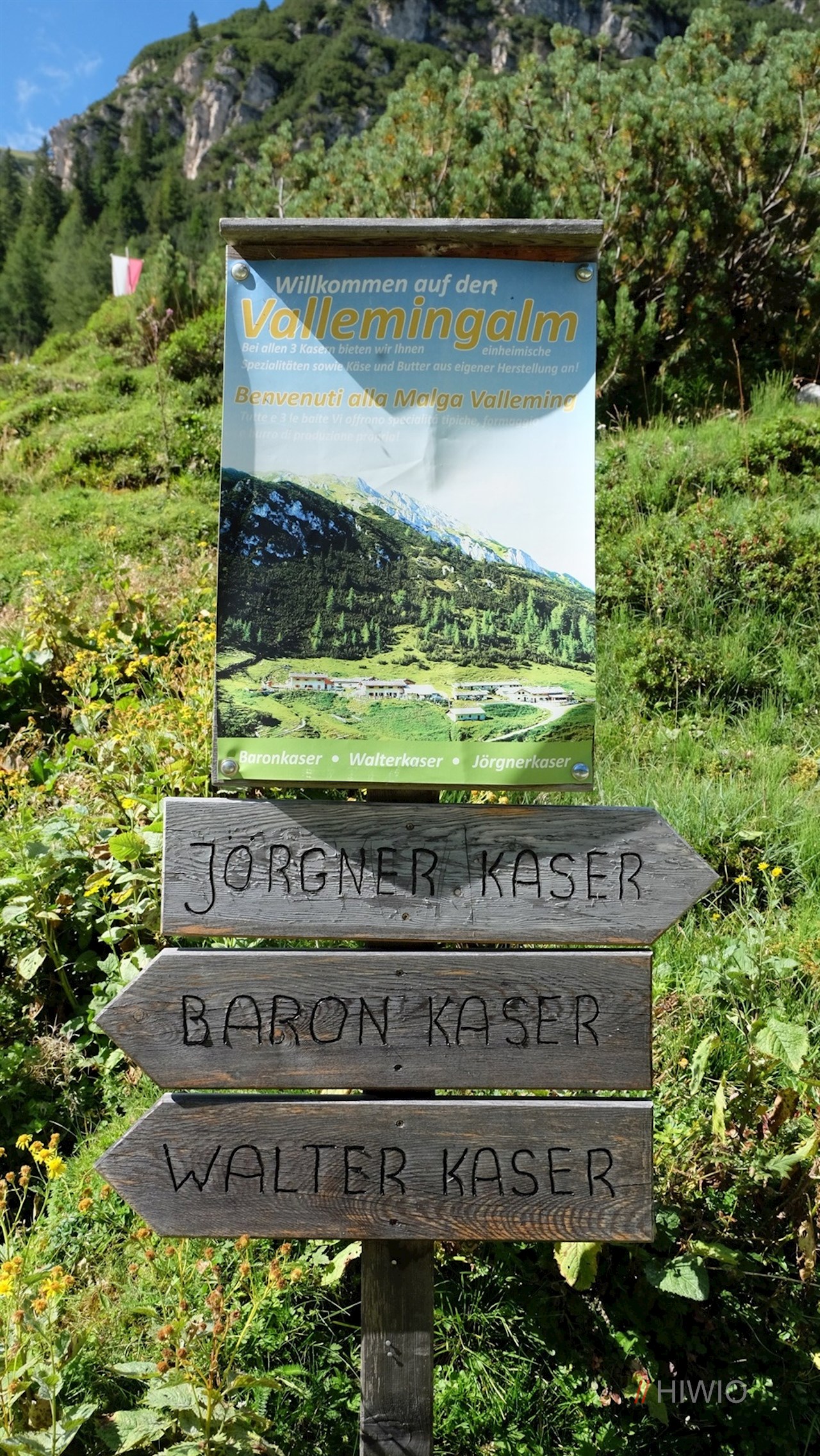 Schließlich erreicht man die Ochsenscharte, auf der man den rechts abzweigenden Weg Nr. 24B zur Vallmingalm einschlägt. Er steigt durch die naturbelassenen Almwiesen zu diesem idyllischen Almdorf ab, in dem gleich drei Käsereien zur genüsslichen Einkehr laden: der Jörgner Kaser, der Baron Kaser und der Walter Kaser. Neben hauseigenen Produkten wie der köstlichen Almbutter, dem Graukäse, dem Kräutertopfen oder dem Joghurt werden den Gästen auch andere traditionelle Südtiroler Gaumenfreuden serviert.