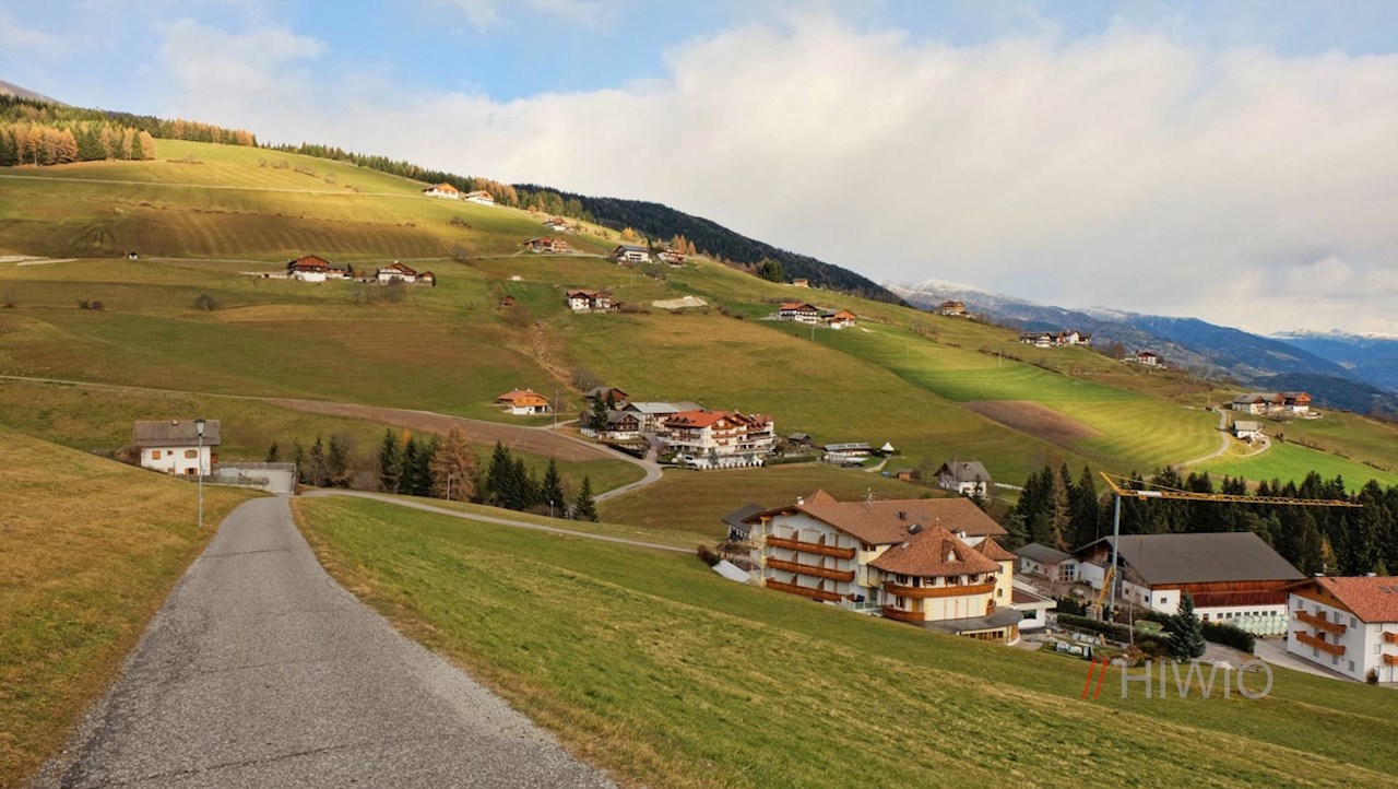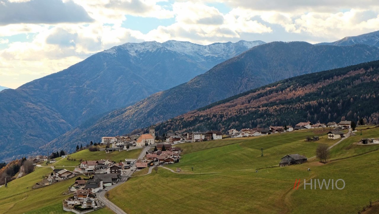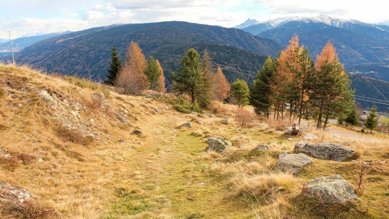 Schließlich tritt der Rundweg wieder aus dem Wald heraus und eröffnet weitreichende Ausblicke auf das untere Pustertal und das Eisacktal. Vor dieser malerischen Kulisse schlängelt er sich durch Wiesen an einzelnen Höfen vorbei und steigt schließlich sanft in Richtung Dorfzentrum ab.