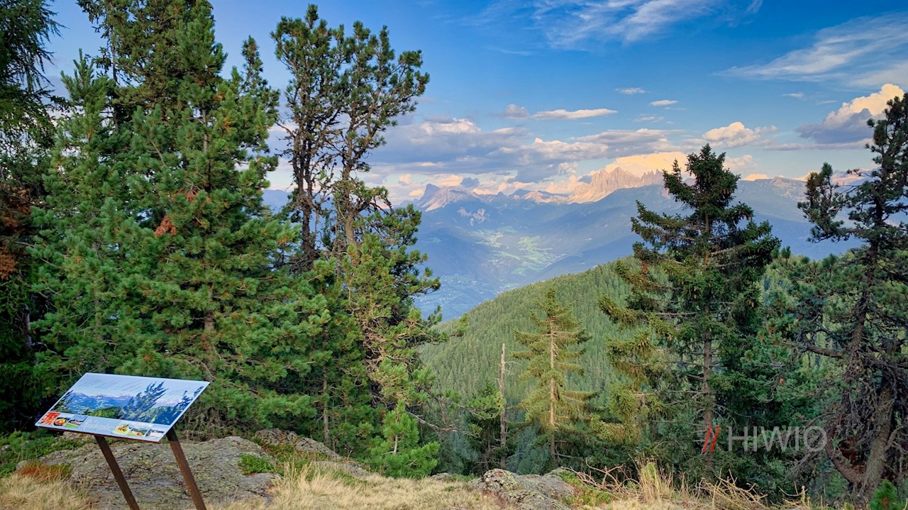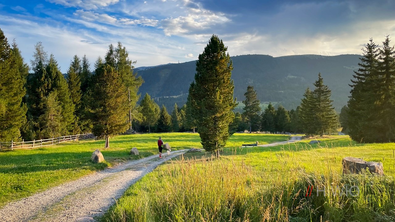 Bei der nahen Gasserhütte ist der Rundweg Sam bereits ausgeschildert. Stets der Wegnummer 24 folgend, führt er im sanften Anstieg am großen Speicherbecken vorbei durch weite, von aromatisch duftenden Zirben bestandene Almwiesen, in denen sich schöne Ausblicke auf den Villanderer Berg öffnen.