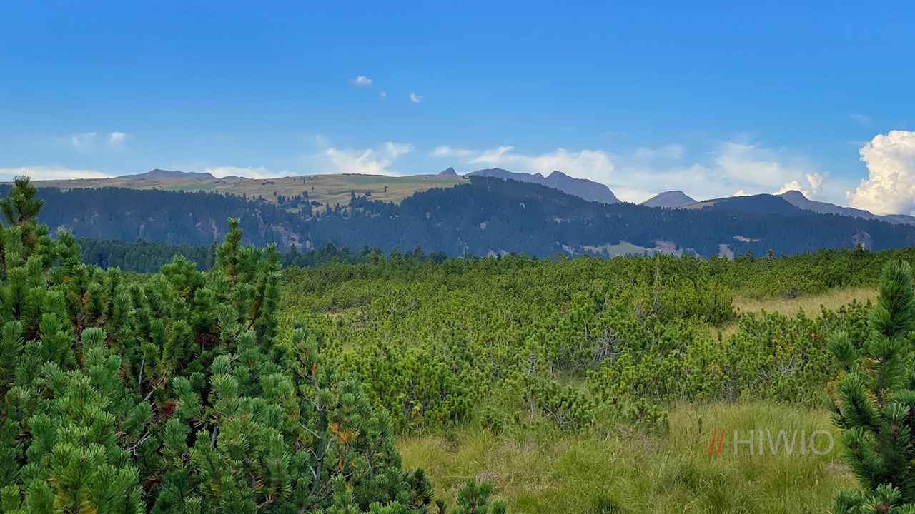 Von der Rinderplatzhütte führt der Rundweg Sam durch Latschenfelder und weite Almwiesen zum Ausgangspunkt bei der Gasserhütte zurück.