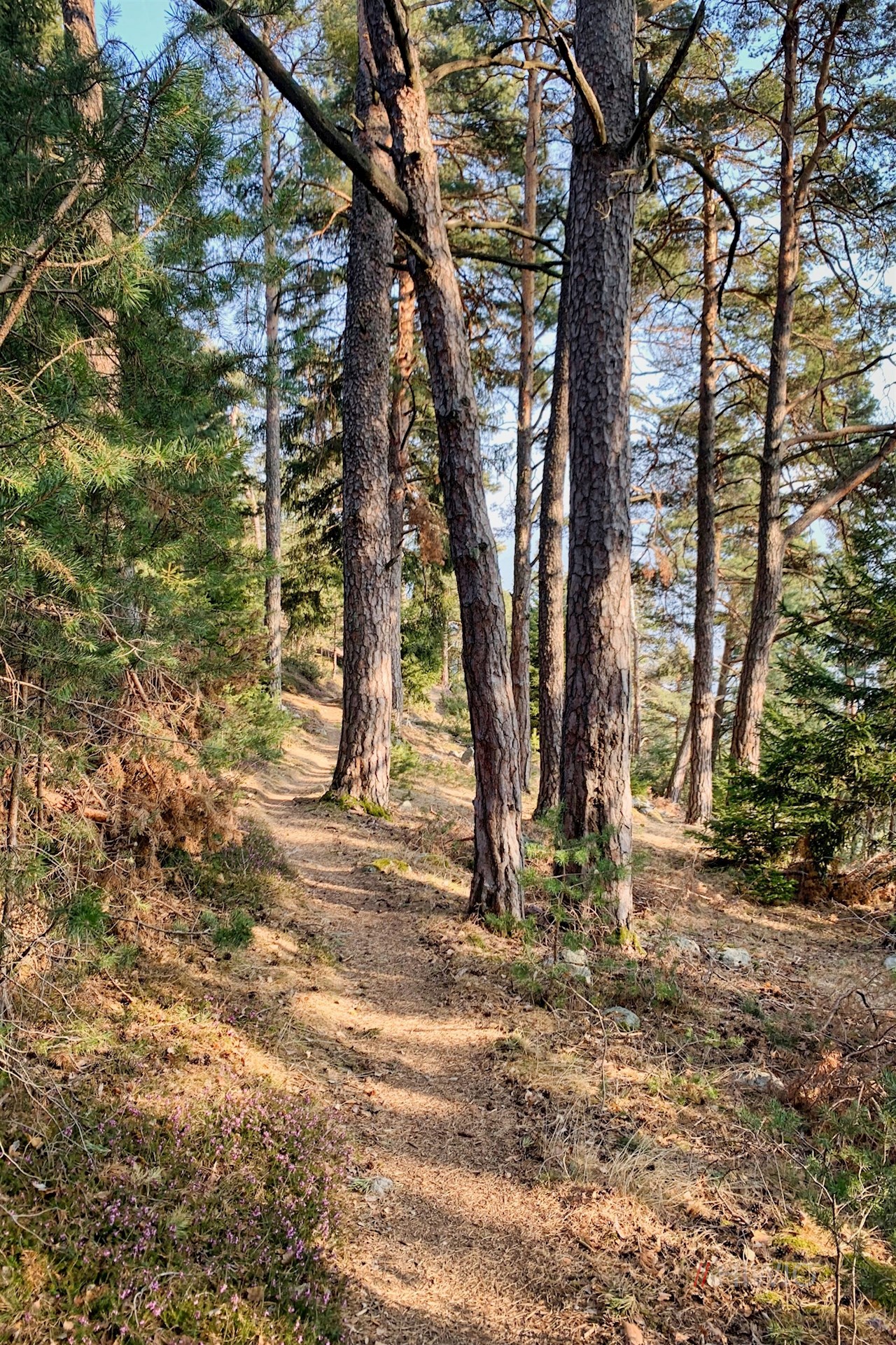 Vom Spingeser Kreuz wandert man ein kurzes Stück zurück, folgt dem Wanderweg Nr. 7A in Richtung Aicha und trifft kurz darauf wieder auf den Rundweg Spinges, der nun in ein schattenverheißendes Waldstück eintritt.