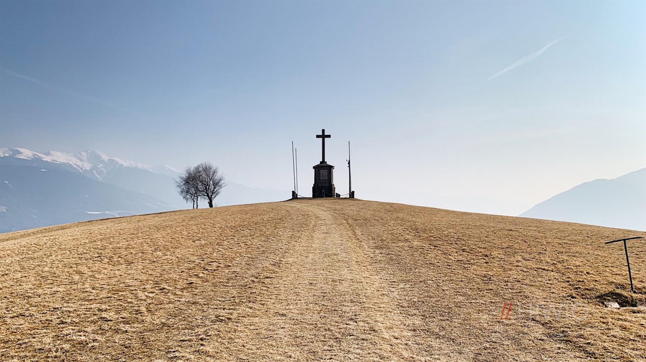 Wenig später steigt der Rundweg zum weithin sichtbaren Spingeser Kreuz ab. Es erinnert an die 57 Tiroler Schützen, die 1797 im Kampf gegen die napoleonischen Truppen ihr Leben ließen. Neben dem suggestiven Gedenkkreuz entfaltet sich ein schöner Ausblick auf den Brixner Talkessel, die Plose und die übrige ringsum aufragende Bergwelt.