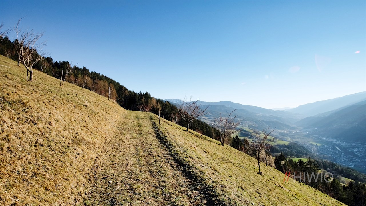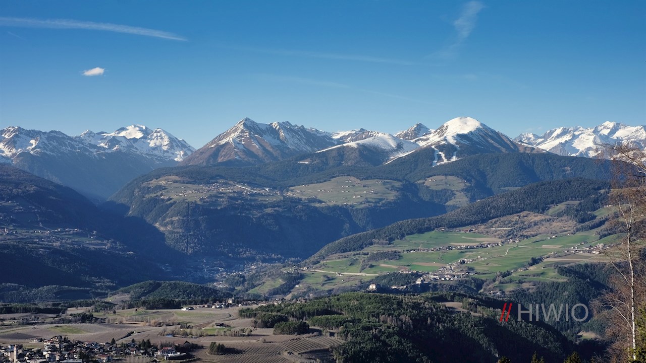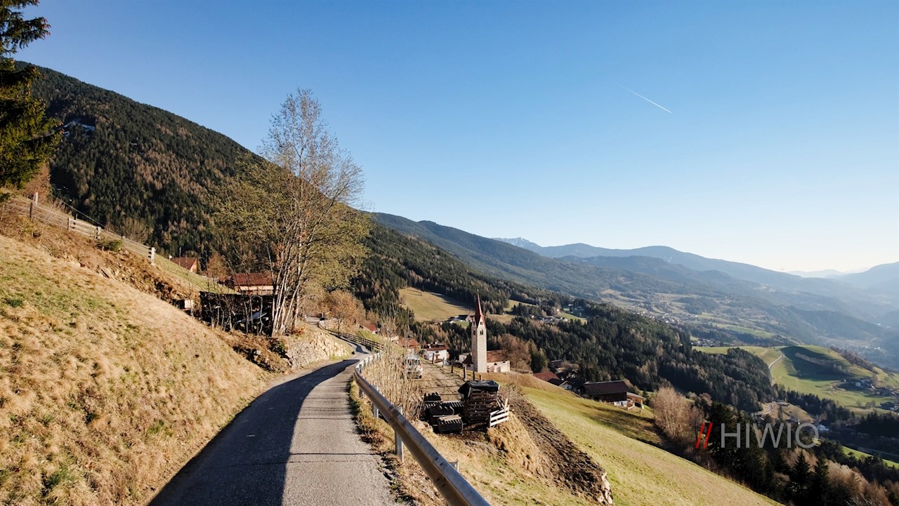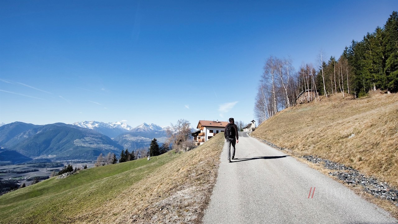 Nach wie vor der Markierung Nr. 6A folgend, wandert man nun vor der malerischen Kulisse der umliegenden Bergwelt und des Eisacktals an verstreuten Höfen und einer Kapelle vorbei.
