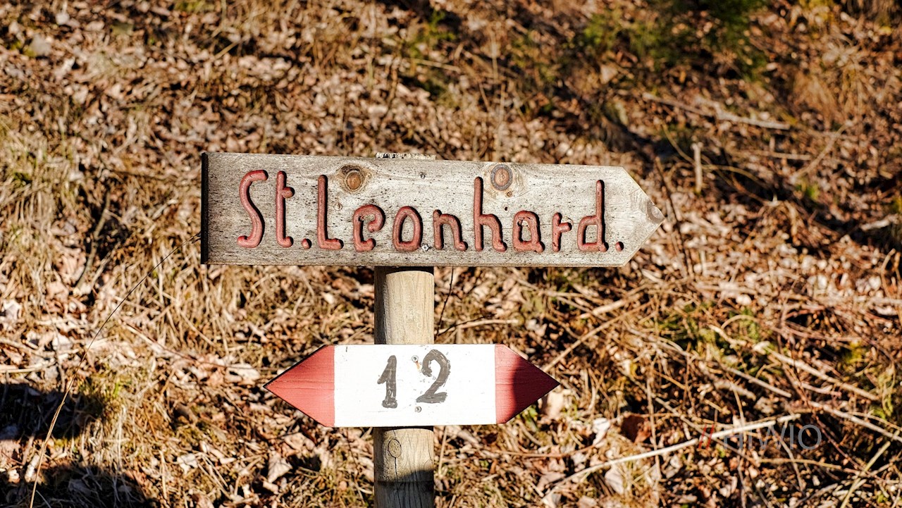 Der Rundweg St. Leonhard nimmt in der Dorfmitte seinen Anfang. Dem Wegweiser Nr. 6A folgend, wandert man zunächst auf der asphaltierten Straße in südliche Richtung. Wenig später zweigt am linken Straßenrand der Waldweg Nr. 6A ab (hier finden sich eventuell einige Parkmöglichkeiten).