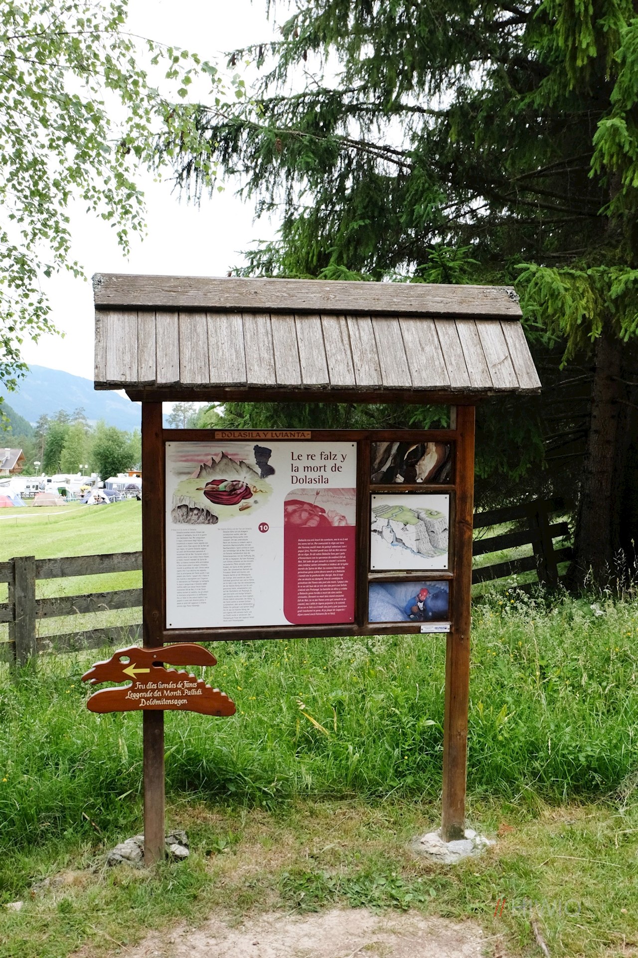 Längs des sanften Weges erzählen elf kindgerecht gestaltete Stationen die anrührende Sage um die liebreizende und zugleich kluge und wagemutige Königstochter Dolasilla und das sagenumwobene Reich der Fanes. Drehbare Tafeln gewähren indes interessante Einblicke in lokale Traditionen, Flora und Fauna.
