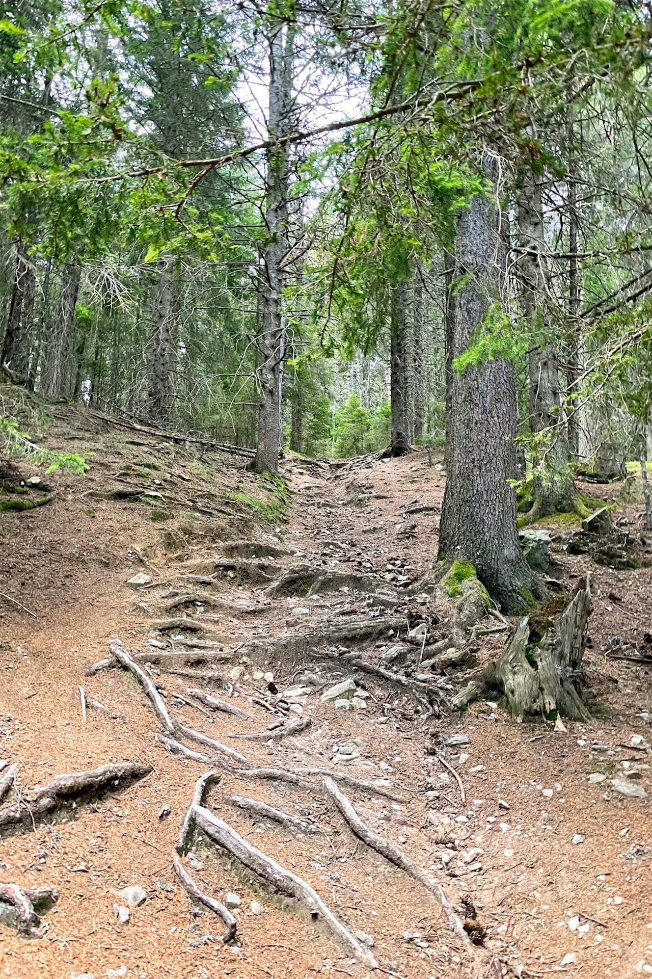 Nach etwa 20 Minuten steten Wanderns führt am rechten Wegesrand der Weg Nr. 23 von ihm weg. Er biegt nach wenigen Schritten links ab (Vorsicht: Diese Abzweigung ist leicht zu übersehen!) und steigt dann recht steil durch Wald und schöne Almwiesen an.