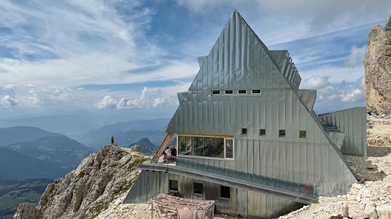 Inmitten der zerklüfteten Felslandschaft des Rosengarten heißen die freundlichen Wirtsleute der pyramidenförmigen Santnerpasshütte die Wanderer wenig später willkommen und verwöhnen sie mit klassischen Hüttengerichten und innovativ zubereiteten Variationen der altbewährten Tiroler Speisen. Garniert wird all dies mit einem spektakulären Ausblick: An klaren Tagen schweift der Blick vom Latemar, dem Weiß- und Schwarzhorn über die Brentagruppe bis zum Ortler und im Osten weit über die Südtiroler Landesgrenze hinaus zu den österreichischen und Schweizer Alpen. Uns zu Füßen liegen indes das Eggental und die Landeshauptstadt Bozen.