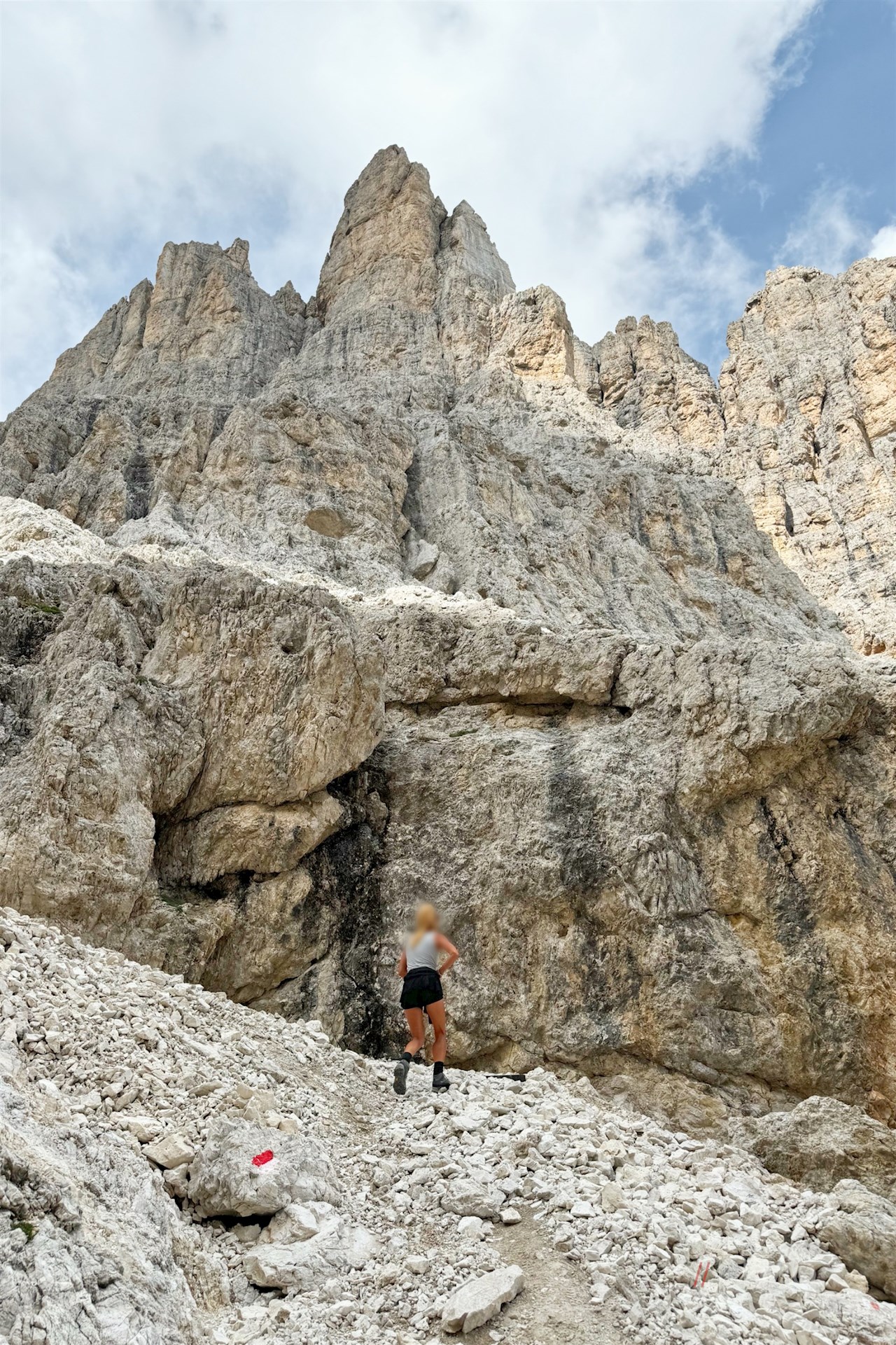 Aufstieg zur Santnerpasshütte von Vigo di Fassa