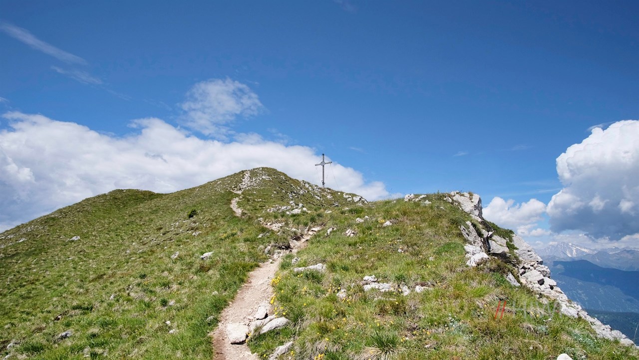 Nach einem letzten Anstieg erreicht man das formschöne Gipfelkreuz des Sarlkofel, neben dem sich ein weitreichendes Panorama entfaltet: Der Blick schweift von den Sextner Dolomiten über den benachbarten Dürrenstein und weitere namhafte Dolomitenberge wie die Lavarella oder den Peitlerkofel zur Rieserfernergruppe. Zu unseren Füßen erstrecken sich indes das Pustertal mit Niederdorf und Toblach und das Höhlensteintal.
