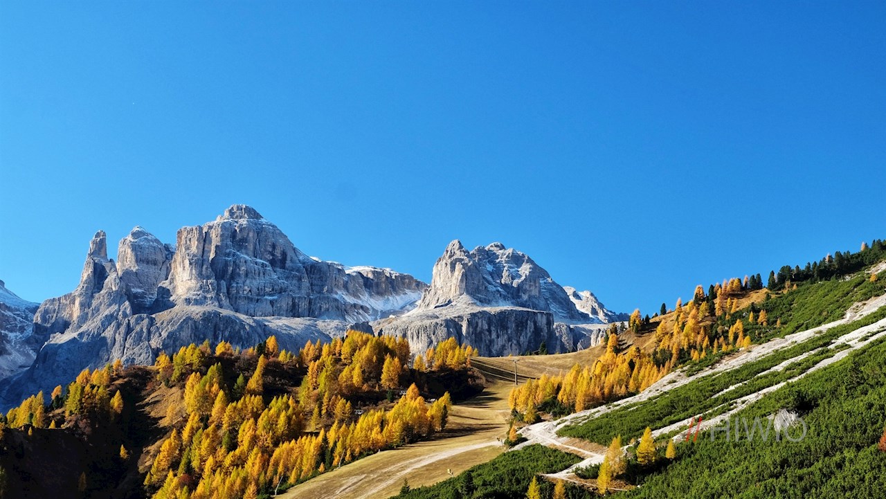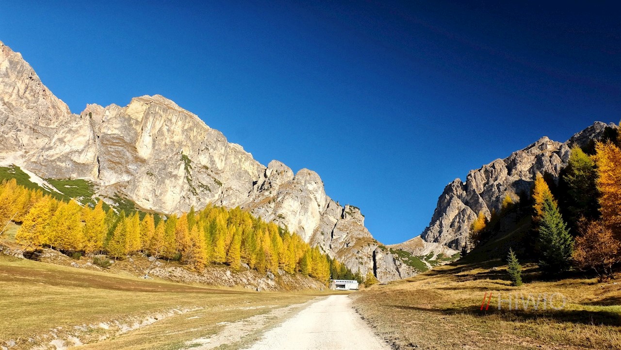 Hier schlägt man den breiten Weg Nr. 4 ein, der im sanften Anstieg zur beliebten Edelweißhütte am Fuße des frei aufragenden Sassongher führt.