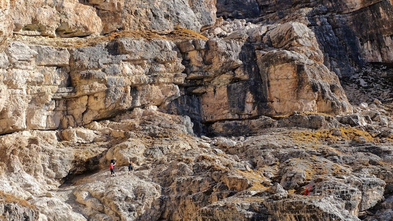 Nun beginnt der etwas kniffligere Teil der Wanderung: der Aufstieg über die karge, geröllreiche Nordflanke des Sassongher, die mit Steilstufen und einem kurzen, relativ einfach zu meisternden Klettersteig aufwartet. Weniger trittsicheren Wanderern und Kindern sei hier eine Klettersteigausrüstung empfohlen.