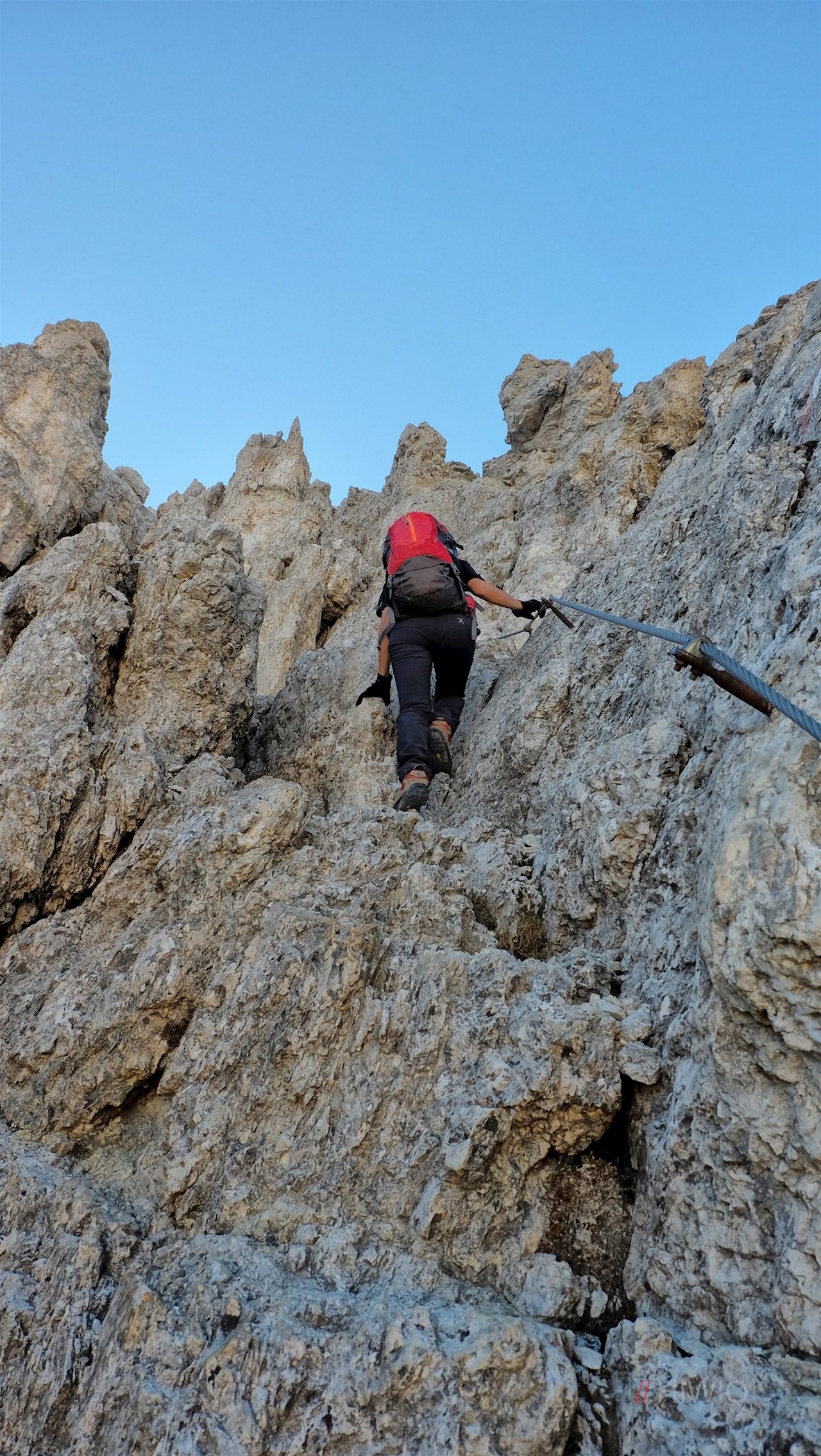 Wenngleich es sich um einen einfachen Klettersteig handelt, erfordert der Anstieg auf den Sassongher doch Trittsicherheit und Schwindelfreiheit.