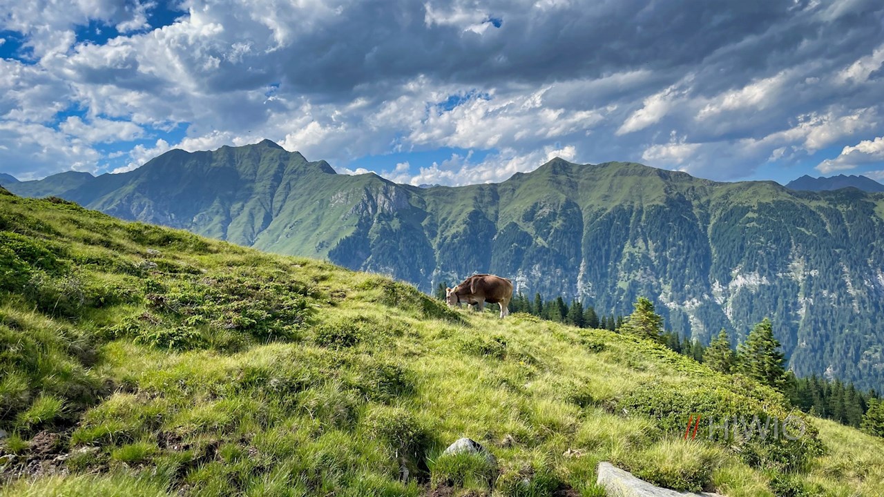 Der Wegnummer 19B folgend, schlängelt sich der gemütliche Ratschinger Almenweg zunächst zur einladenden Wasserfalleralm und der dahinter liegenden Saxnerhütte.