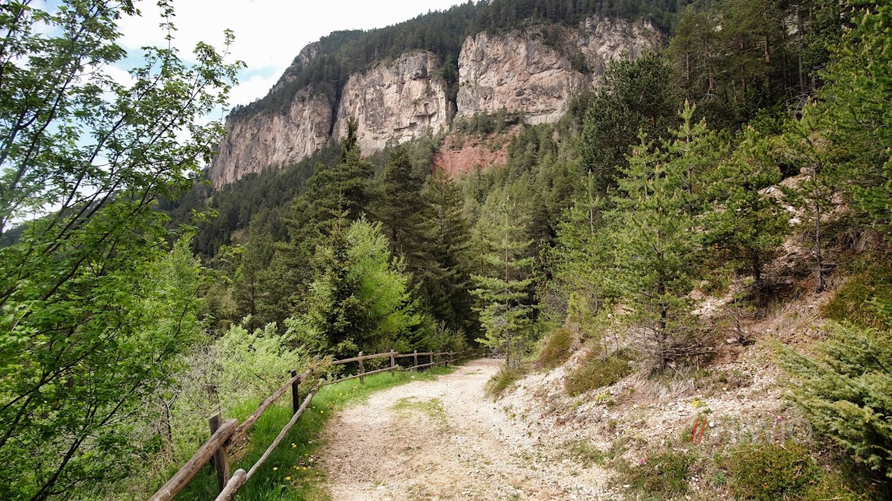 Hier schlägt man den stetig ansteigenden Weg Nr. 7 in Richtung Tschafonhütte ein. Er taucht sogleich in einen lauschigen, im Frühling von zahlreichen Leberblümchen bewachsenen Wald ein und geht schließlich in die Wegnummer 4 über. Längs des Weges öffnen sich immer wieder schöne Ausblicke auf den markanten Schlern und die Hammerwand.
