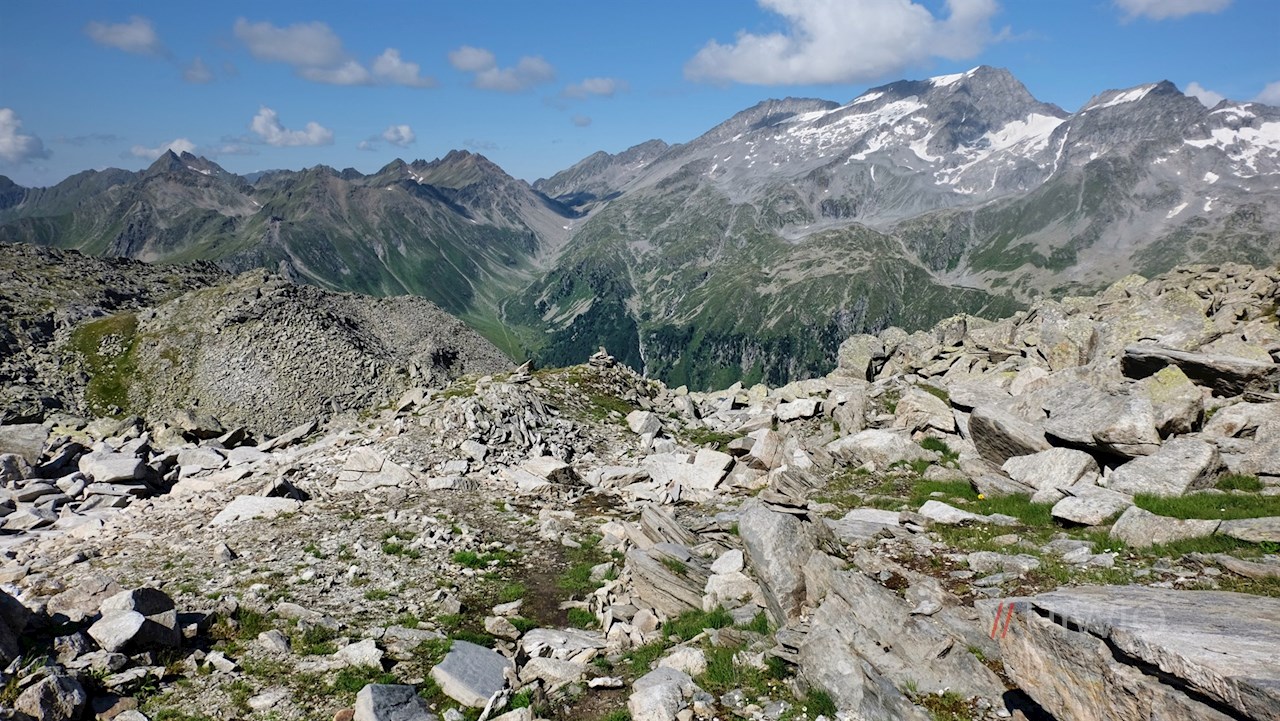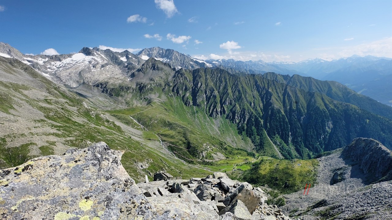 Auf dem Schaflahnernock, der sich südlich der Chemnitzer Hütte erhebt, entfaltet sich ein ungemein weitreichender Ausblick ins Ahrntal und auf seine hochaufragende Berg- und Gletscherwelt.