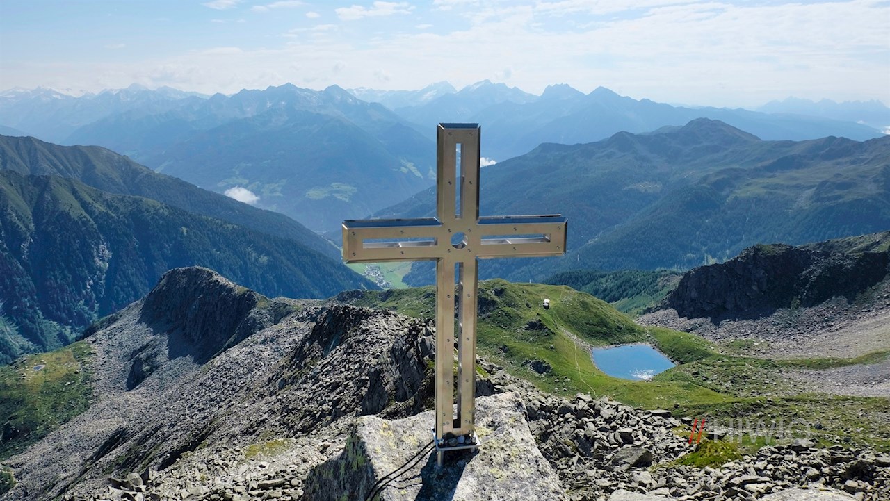 Hinter der Chemnitzer Hütte weist ein Wanderschild den rechts abzweigenden Weg auf den Schaflahnernock. Er steigt zunächst über einen Schutthang und später in leichter Kletterei über felsiges Gelände und teils lockeres Blockwerk zum schlichten und zugleich eleganten Gipfelkreuz des 2.703 m hohen Schaflahnernock an. Oben entfaltet sich ein ungemein weitreichender Ausblick auf die Ahrntaler Bergwelt mit ihren markanten Dreitausendern wie dem Großen Möseler oder dem Hohen Weißzint. Zu unseren Füßen liegen indes der schimmernde Tristensee, die Göge Alm und Weißenbach.
