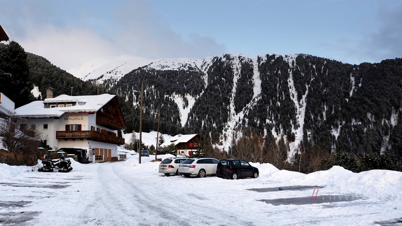 Die Winterwanderung zur Schatzerhütte beginnt am Wanderparkplatz „Skihütte“ (Palmschoß) bei Afers.