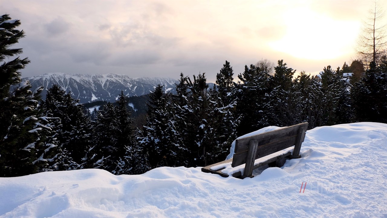 Auch im Winter erfreut sich die idyllisch gelegene Schatzerhütte großer Beliebtheit. Zu dieser gemütlichen Almhütte am Plosehang führt ein einfacher, sanft ansteigender Wanderweg.