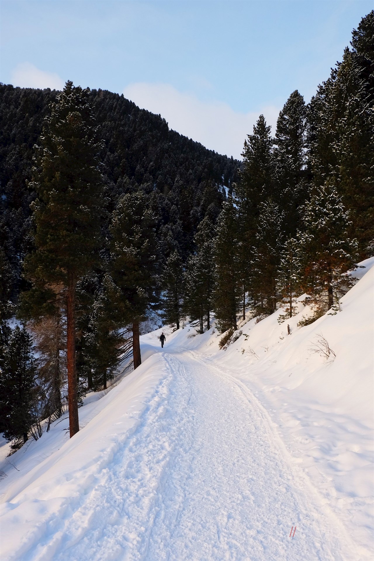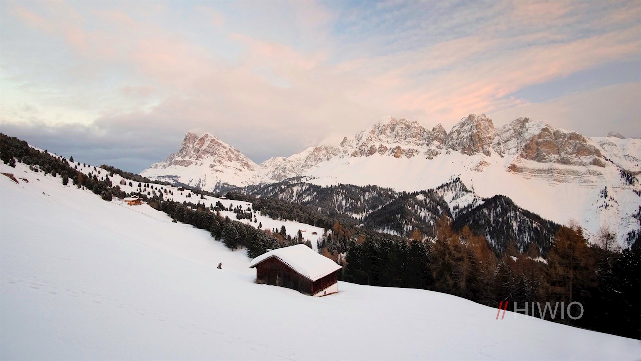 Am Parkplatz nimmt der Wanderweg Nr. 8 seinen Anfang, der sich im sanften Anstieg durch die bezaubernde, von schneebedeckten Bäumen und Almwiesen geprägte Winterlandschaft schlängelt und dabei traumverlorene Ausblicke auf Afers und die bleichen Dolomiten freigibt.