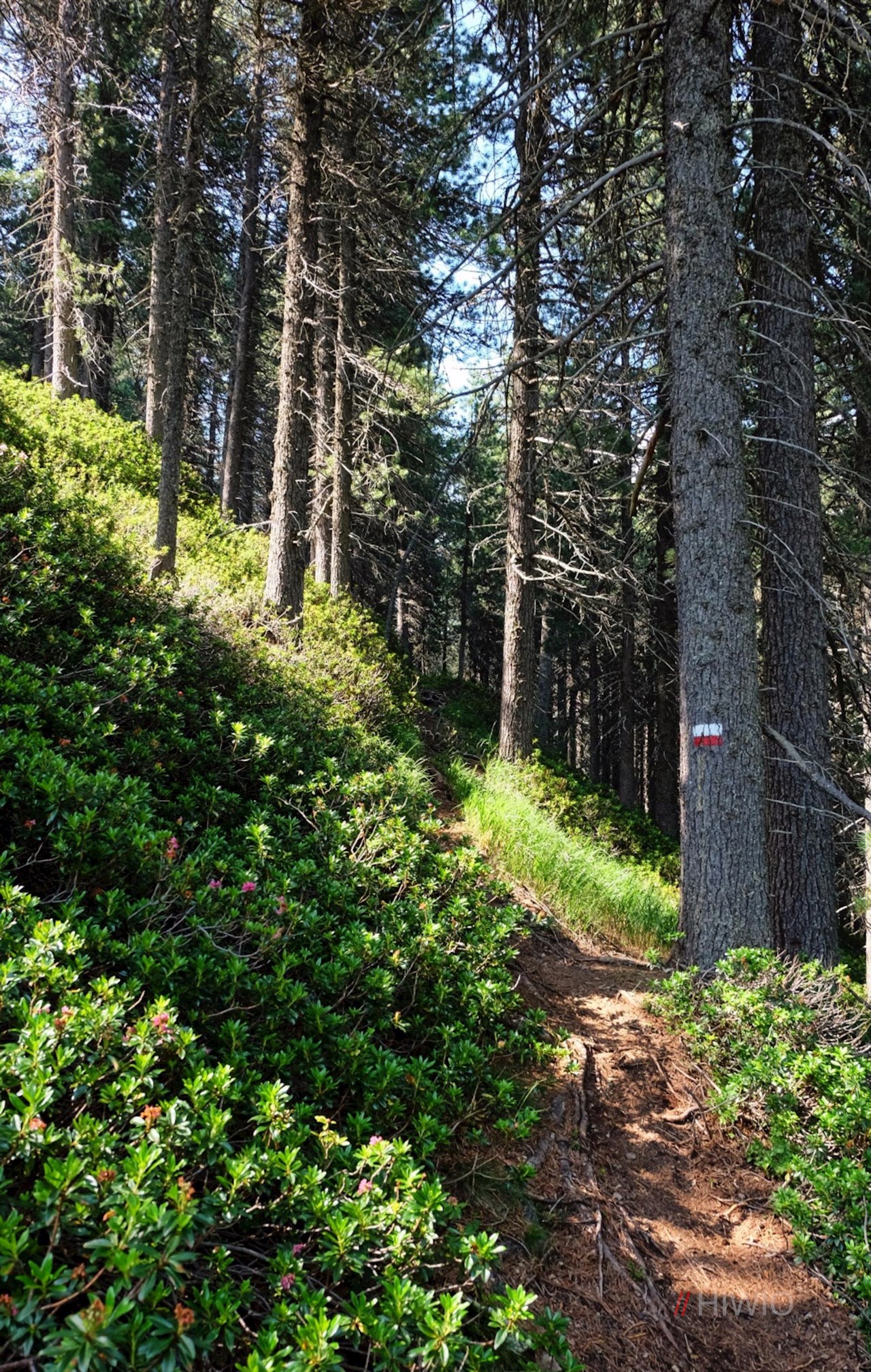 Weiterhin der Markierung Nr. 2A folgend, steigt man nach der wohlverdienten Gipfelrast zum höchsten Punkt des Aussichtsberges hoch, hinter dem sich der Weg durch Wald und Wiesen in Richtung Spilucker Scharte und von dort zur Zirmaitalm schlängelt. Die gemütliche Alm verheißt genussreiche Momente in gemütlicher Atmosphäre.