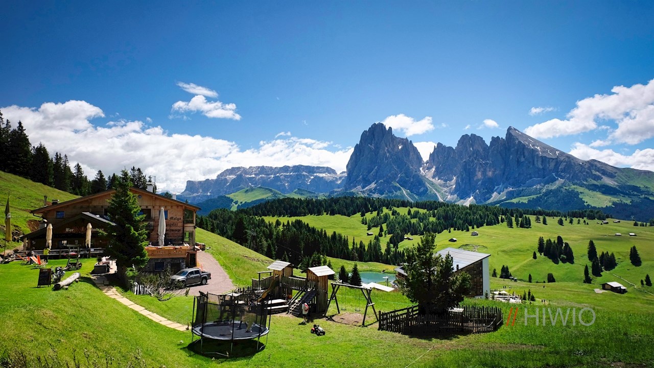 Die Schgaguler Schwaige auf der Seiser Alm ist ein ideales Ausflugsziel für Wanderungen mit Kindern. Nach einer leichten Wanderung auf breiten, kinderwagentauglichen Wanderwegen lädt die beliebte Almhütte vor der Kulisse der Dolomiten zur genüsslichen Einkehr. Die Kinder dürfen sich überdies auf einen Spielplatz und einen Streichelzoo freuen.