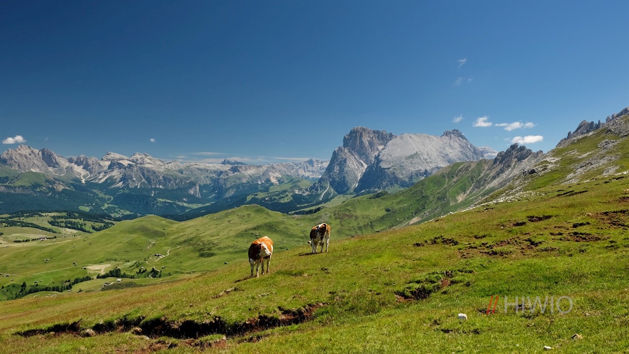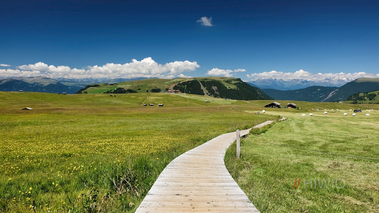 Von der Bergstation folgt man zunächst dem breiten Wanderweg Nr. 10, der sich durch die weitläufigen Blumenwiesen der Seiser Alm zur Prossliner Schwaige schlängelt. Vor der imposanten Kulisse des Schlern lädt sie inmitten der sanft gewellten Almwiesen zur genüsslichen Zwischenrast.