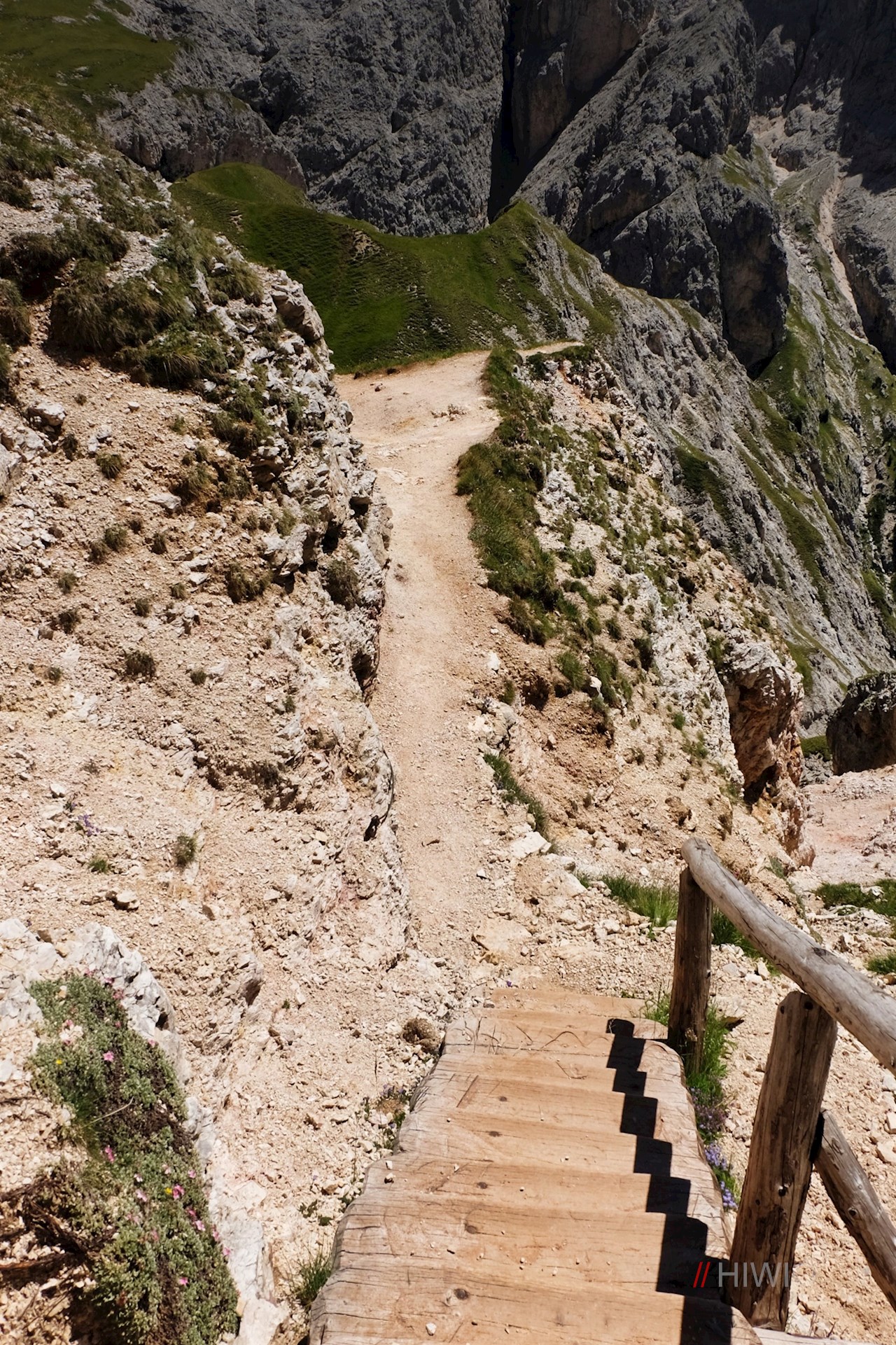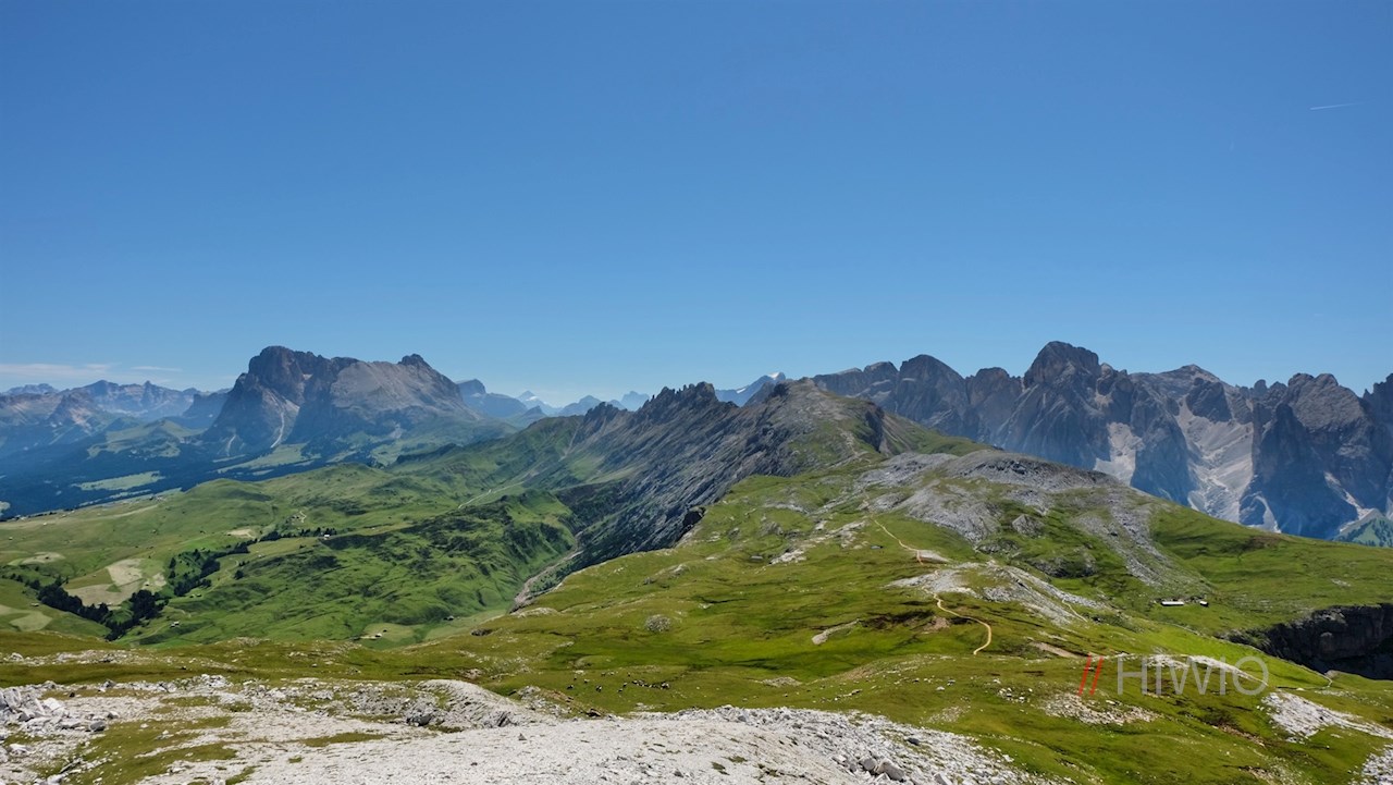An deren Ende angelangt, beginnt der gemütlichste Teil der Wanderung: Die teils ebene, teils sanft abfallende Wanderung durch die blumenreichen Almwiesen der Seiser Alm, deren Artenvielfalt dem äußerst fruchtbaren Boden geschuldet ist. Seine optimale Mischung aus Kalk, Ton, Sand und mineralreicher Vulkanasche lässt hier zahlreiche Arten gedeihen.
