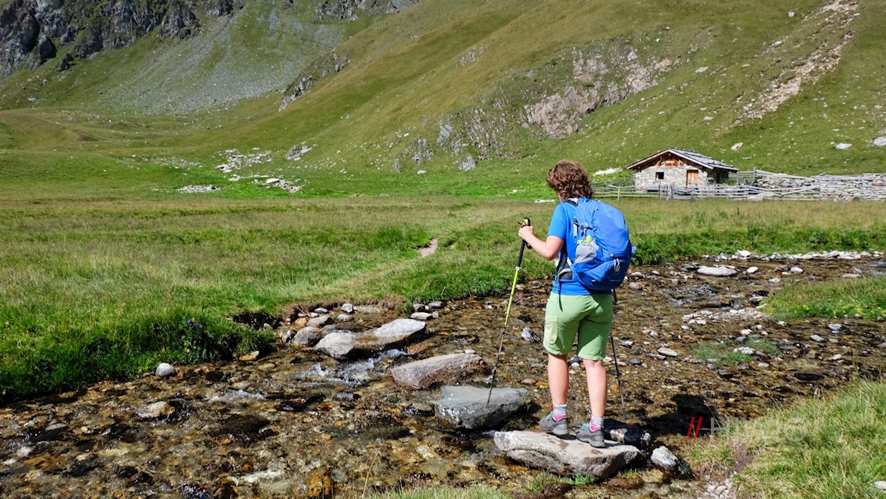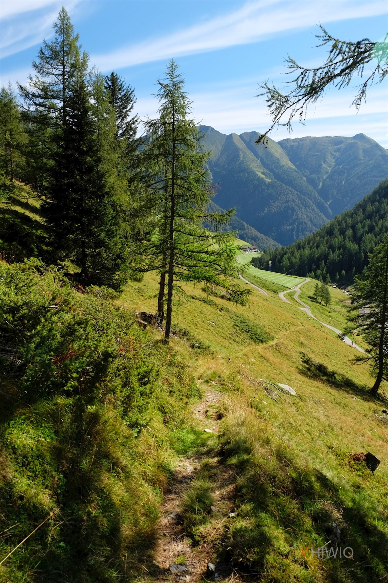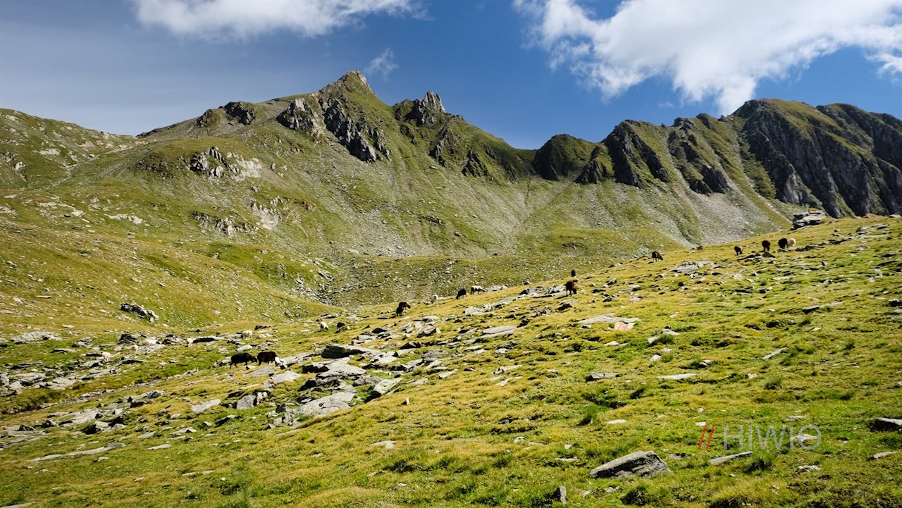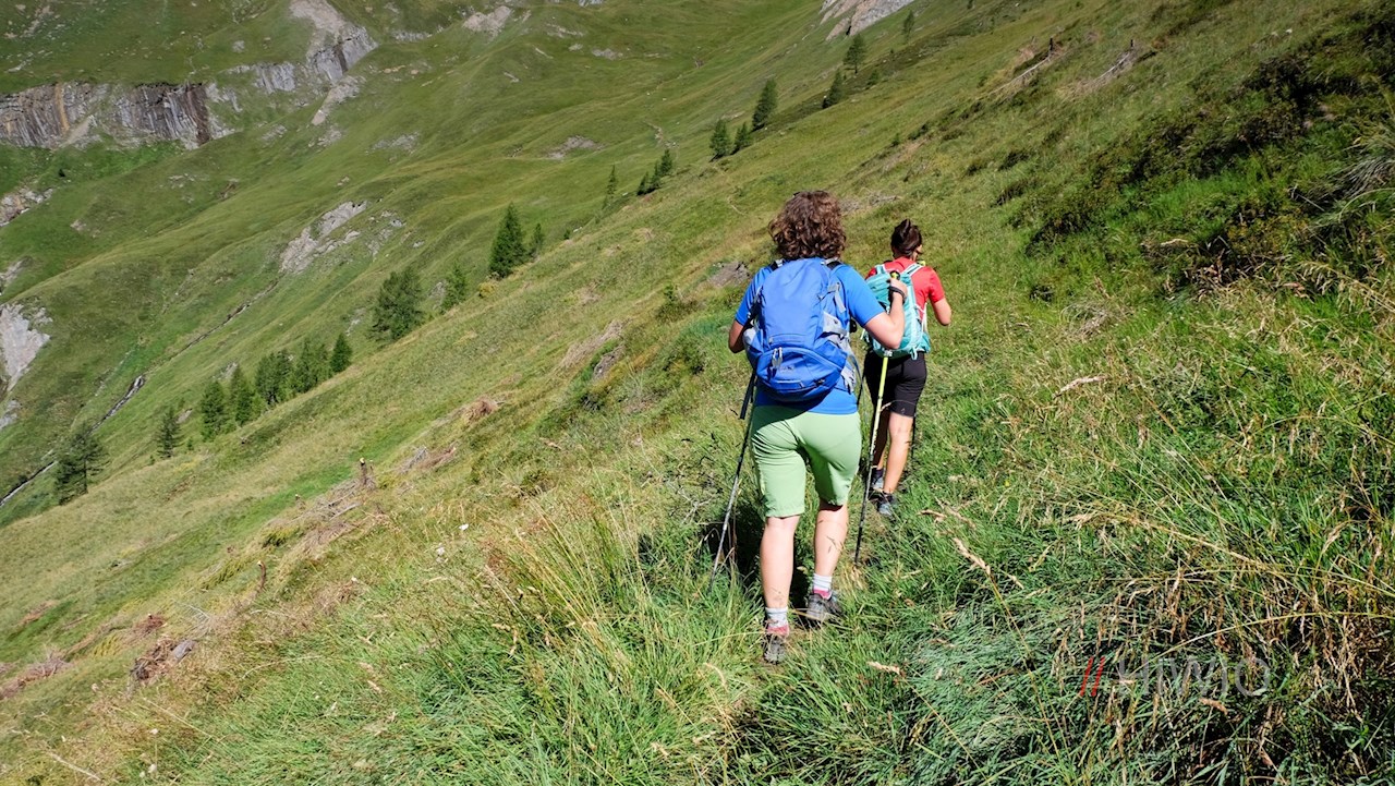 Der Wegnummer 6 in Richtung Seebergseen folgend, taucht der Wanderpfad sogleich in ein lichtes Waldstück ein, hinter dem sich die weiten, von einzelnen Bachläufen durchzogenen Zösner Wiesen ausdehnen. Vor der anmutigen Kulisse der ringsum aufstrebenden Bergwelt quert der Weg im angenehmen Anstieg die idyllischen, teils steil abfallenden Bergwiesen.