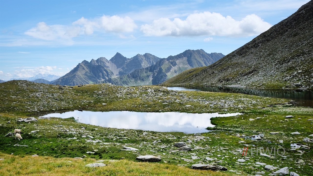 Hinter der steinernen Schäferalm Seeberg führt er durch das zunehmend steinigere Gelände zu den schimmernden Seebergseen, an deren Ufern das flauschige Wollgras gedeiht. Inmitten steinbeschlagener Schafweiden laden sie vor der Kulisse der umliegenden Bergwelt mit der nahen Napfspitze oder dem vergletscherten Weißzint zur genüsslichen Rast.