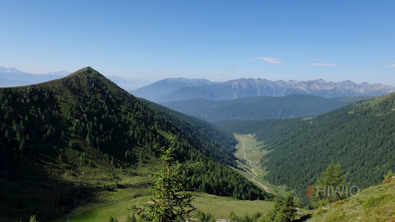 Von der Wieserhütte führt der breite Weg Nr. 15 ohne nennenswerte Höhenunterschiede durch das weitläufige Almgelände des langgezogenen Altfasstals.
