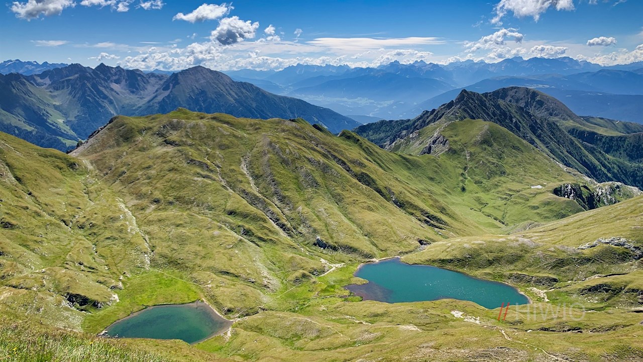 Hier entfaltet sich ein weitreichendes Panorama: Der Blick schweift von den majestätischen Zillertaler Gletschern über die umliegenden Pfunderer Berge bis hin zu den in der Ferne aufragenden Dolomiten. Zu unseren Füßen schimmern indes der Mittlere und Kleine Seefeldsee.